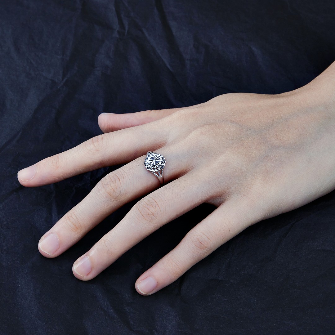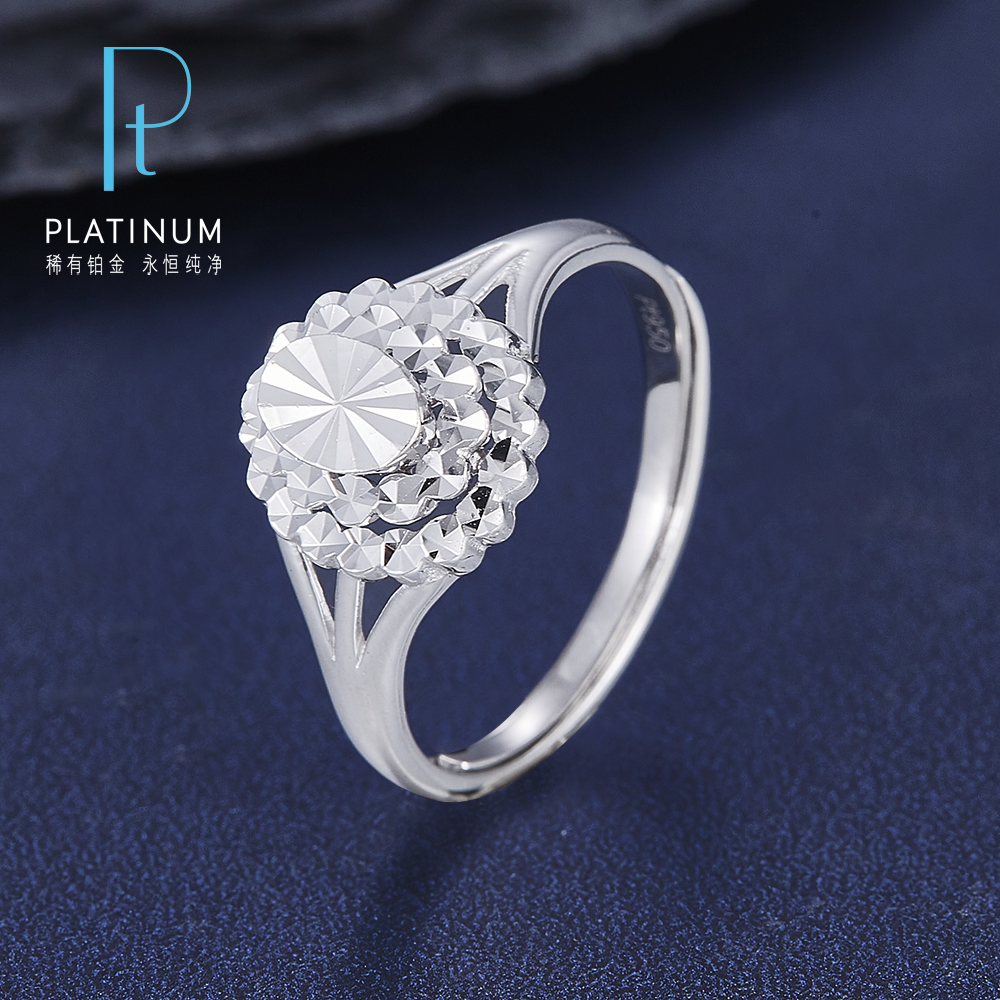 【限时8.8折】【线上铂金馆】PT950 【国际铂金协会】铂金双层仿钻戒车花椭圆形花篮活口女戒(BJZ00072)预售产品下单后不退款不退货不换货不补差价)