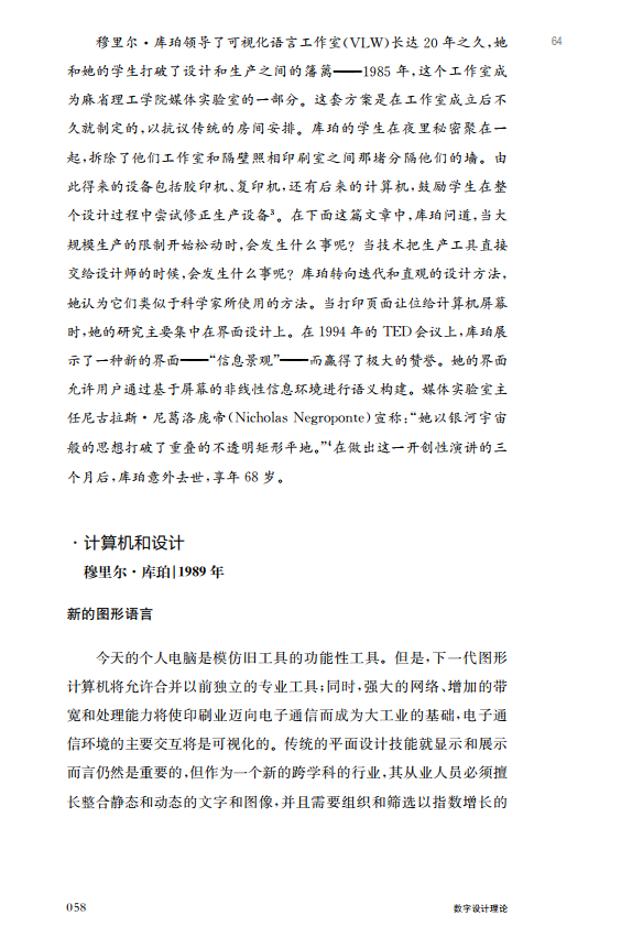 数字设计伴随着计算机、互联网的发明而产生,其形式、内容、方法与基础理论同样也随着技术的迅猛革新而不断发展。本书即是记录20世纪60年代以来技术革命背景下数字设计理论与方法不断演进的专业图书,为读者展现出数字设计近60年发展的三个不同阶段:数字设计的建构、数字设计的核心、数字设计的未来。一方面有助于专业学者了解数字设计的发展史、另一方面也有助于数字设计从业者能够从把握数字设计领域的最新动态与发展方向。