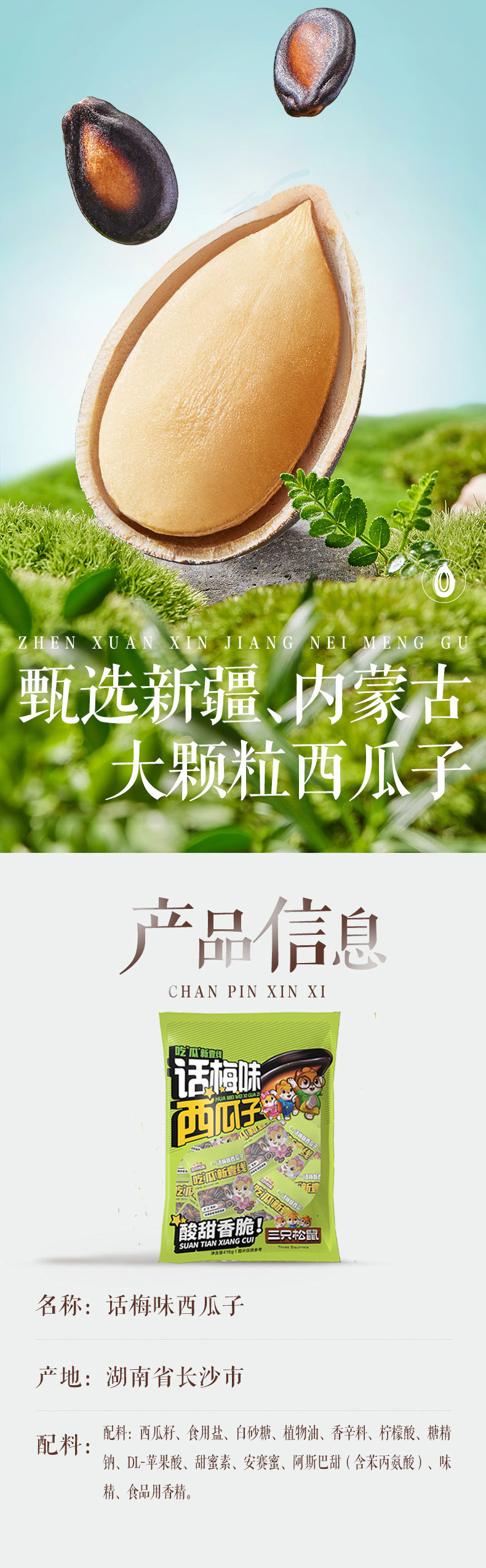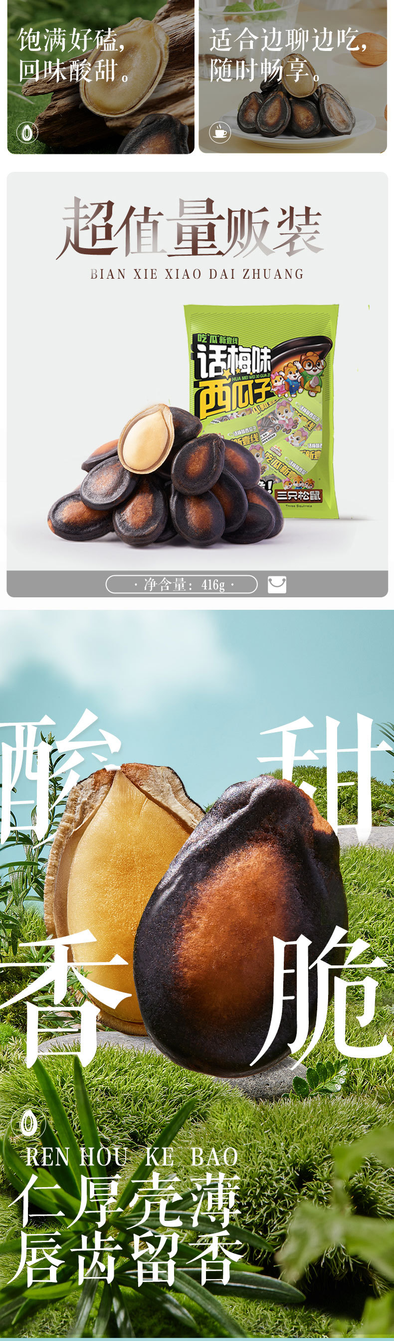 【19.9到手50包】三只松鼠_量贩袋装_西瓜子/话梅味/416g香脆好磕
