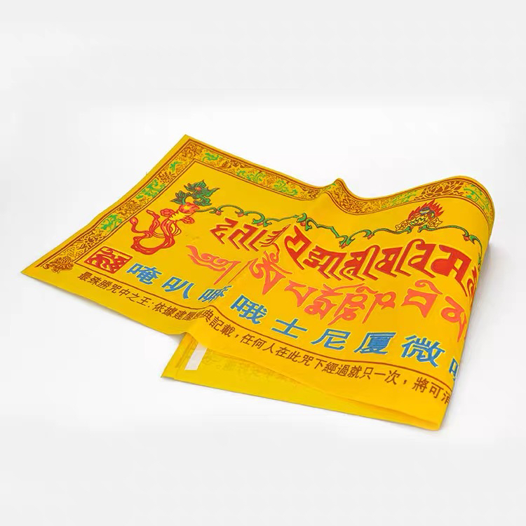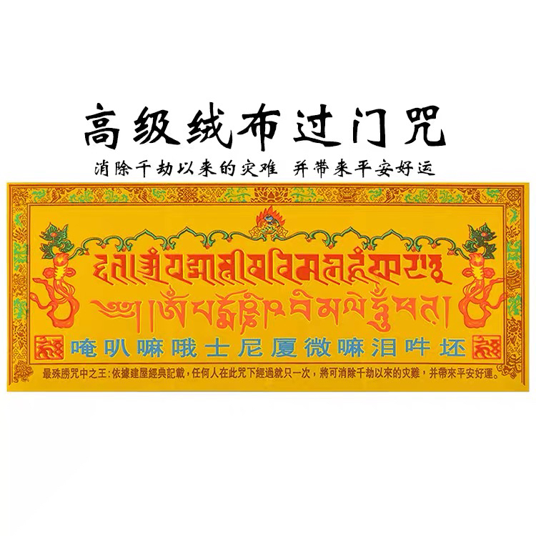 【宝贝描述】:将咒贴在门楣上,下面走过的人及有情得净化,不堕恶趣 过门咒介绍: 殊胜咒中。 依据建屋经典记载,任何人在此咒下经过只一次,将可消除千劫以来的灾难,并带来平安好运。 灵气具足的藏密镇宅咒语,是密宗里的一种唐卡,具有辟邪消灾的功效.是以古梵文書寫出自’不空絹索觀音密續’及’建屋經’,此咒作用:如僅凝視即能獲得無量之加持;若將此咒高懸於门楣之上,或行人所經之高處,凡從此咒下經過一次者,即得無上威神加持,三業漸證清無垢,滅除百千萬劫重罪。