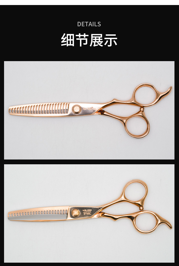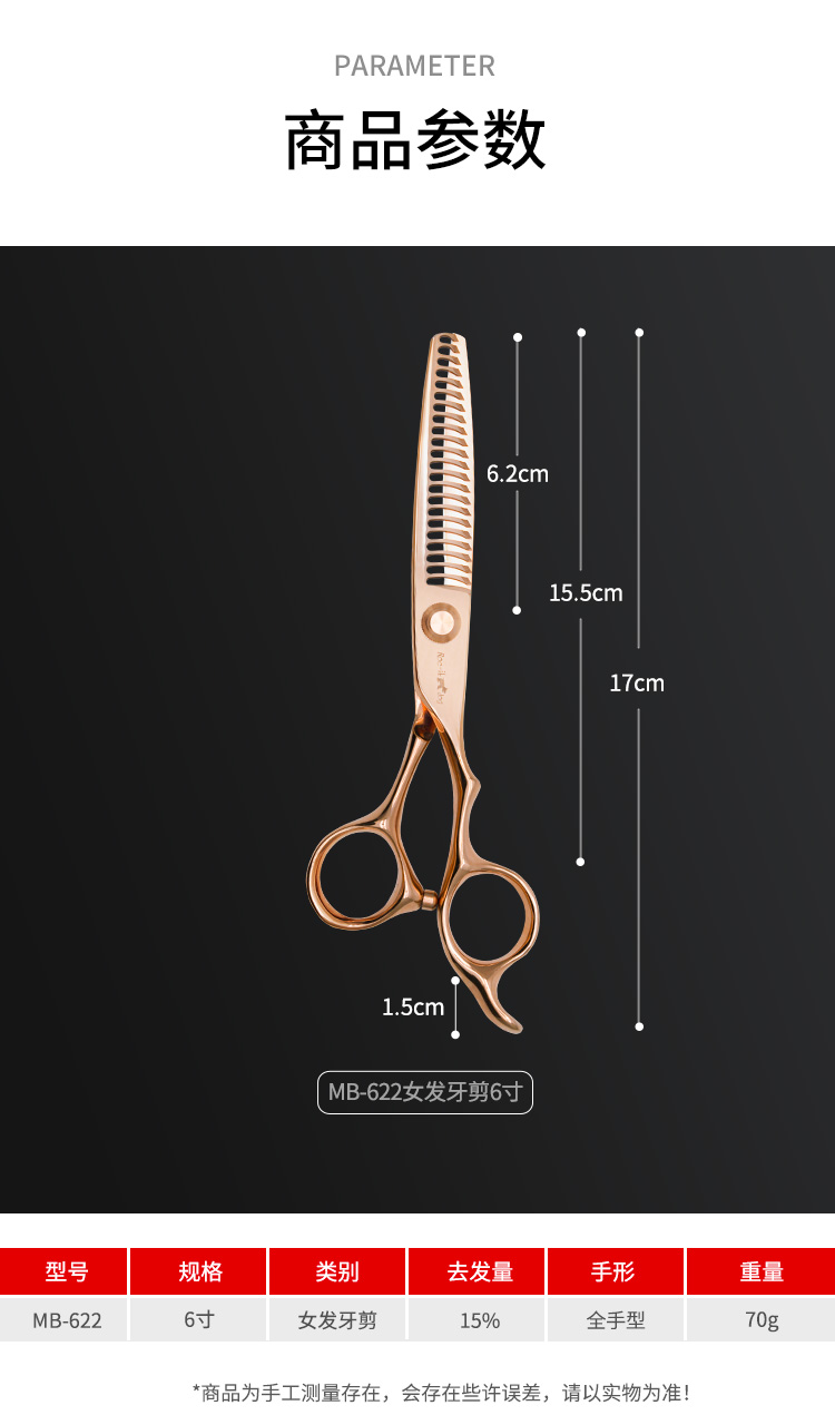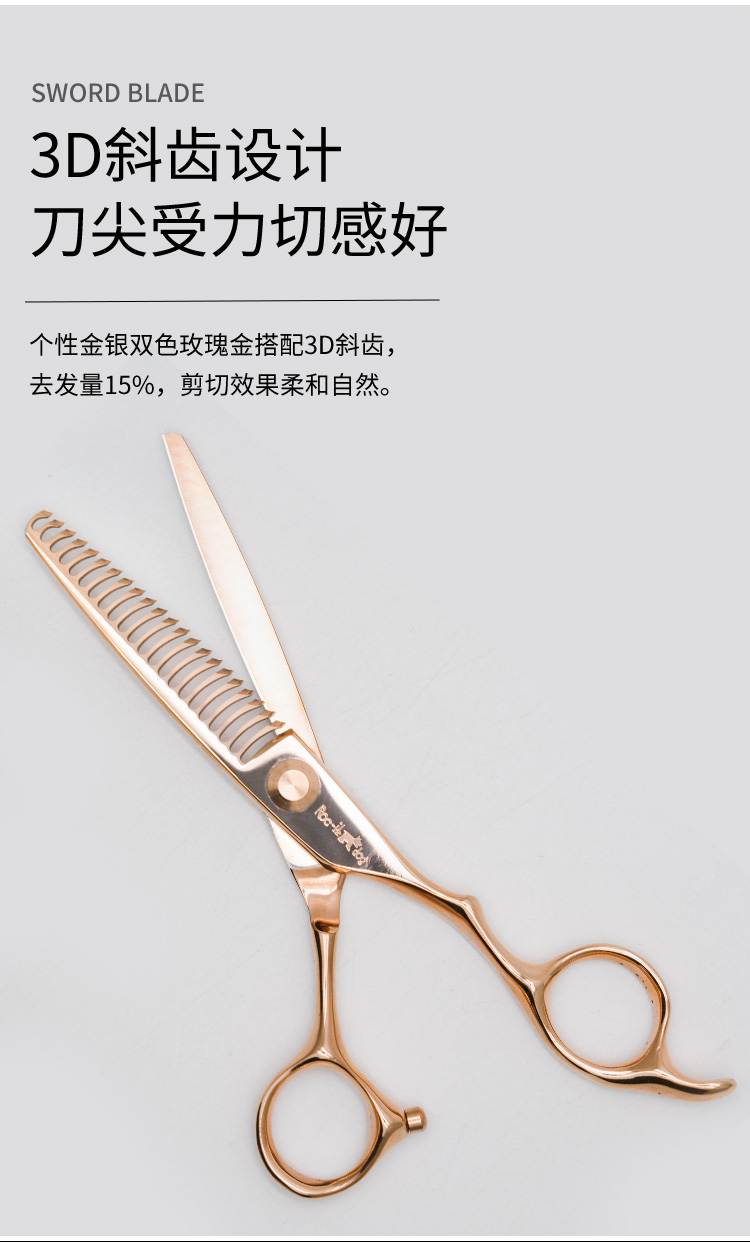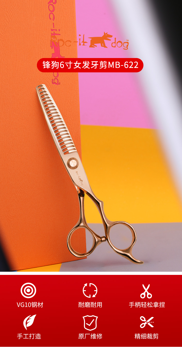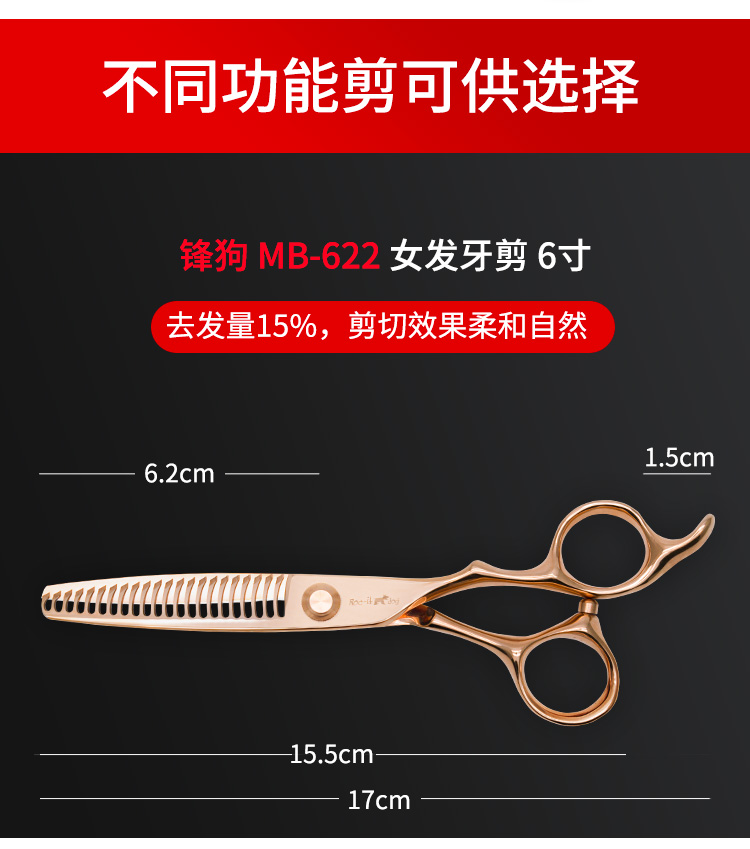 锋狗剪刀MB-622/金银双色玫瑰金 理发美发剪刀女发牙剪调量剪去发量15%