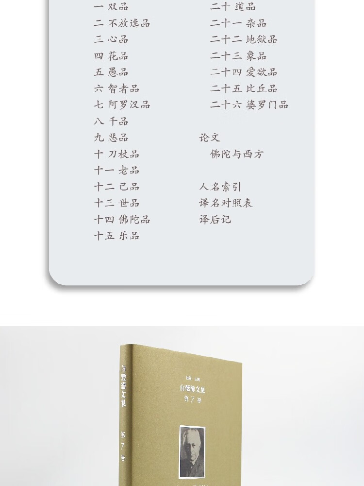 本书系大师文集之《白璧德文集》第七卷,是白璧德生平著述中的唯一一部译作。在本书附文中,白璧德将东西方的文化与思想进行对比,揭示出佛教对于人之内在生命真理的重视与实践,并指出其中道学说具有人文主义特点。