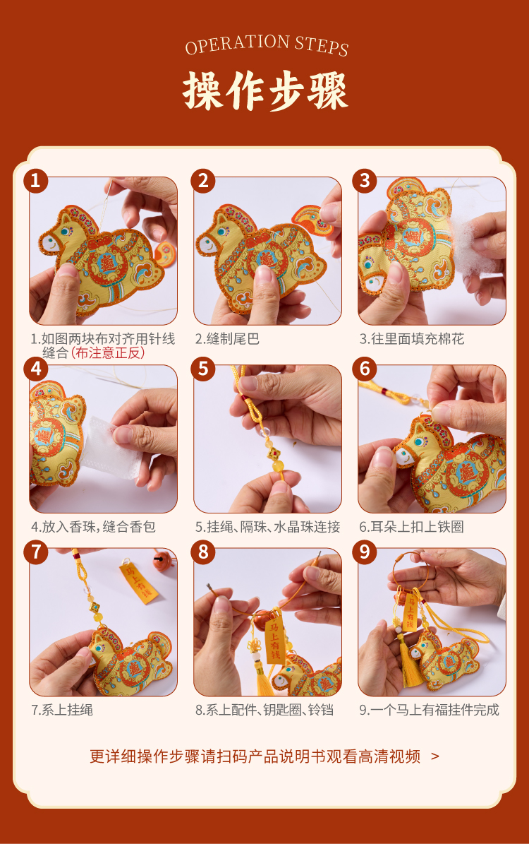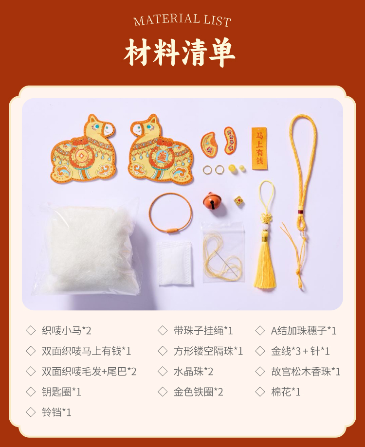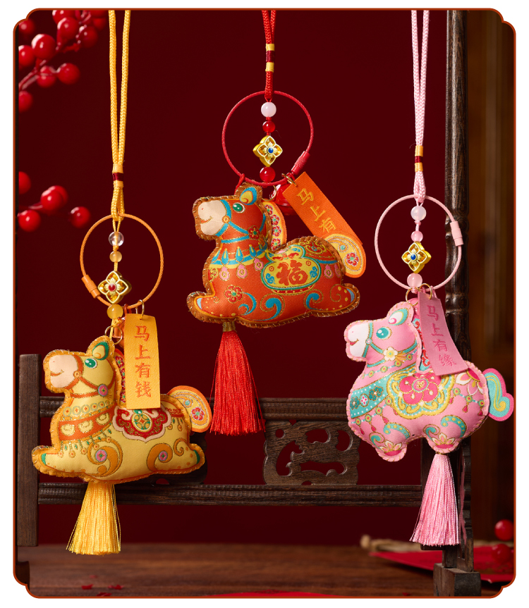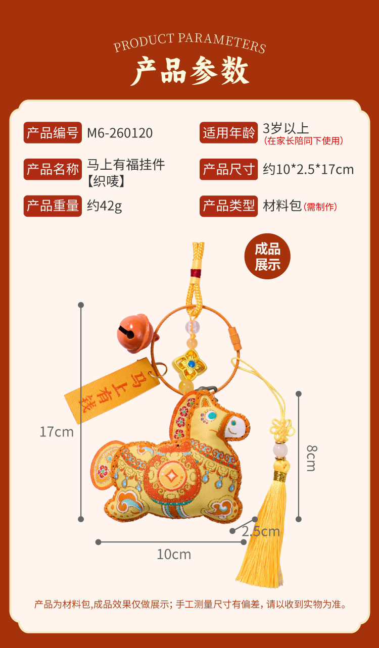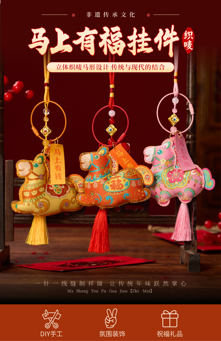 马年新年春节元旦活动织唛马上有福挂件,立体织唛马形设计,传统与现代的结合,装饰祝福,可挂于包包、门窗或车饰,福气随身,新年氛围拉满,手工diy,儿童制作材料,装饰挂件