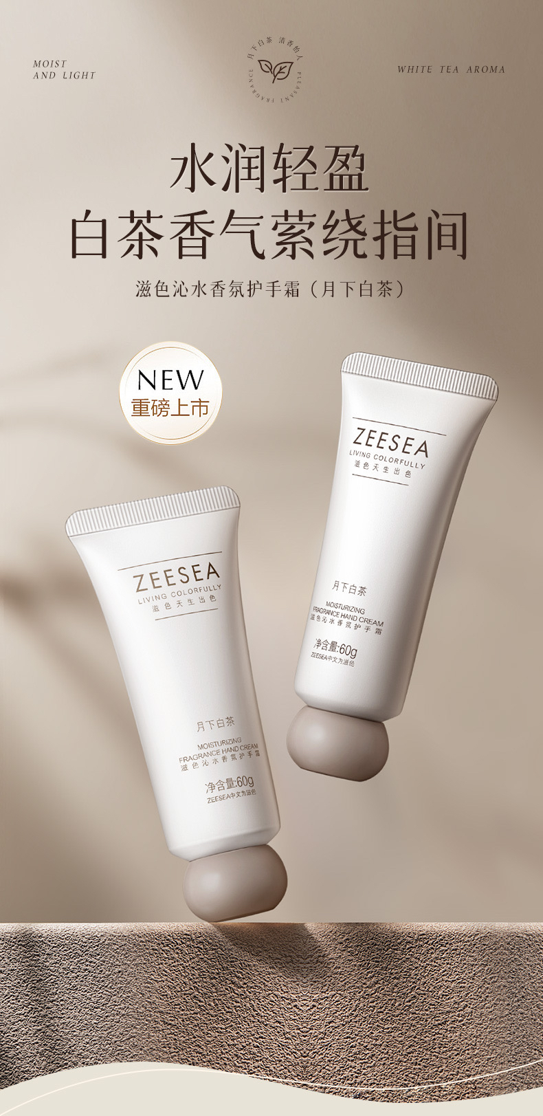 [护手霜]【到手价13.3元 | 39.9元任选3件】ZEESEA滋色沁水香氛护手霜(月下白茶)(任选3件,拍下立减)