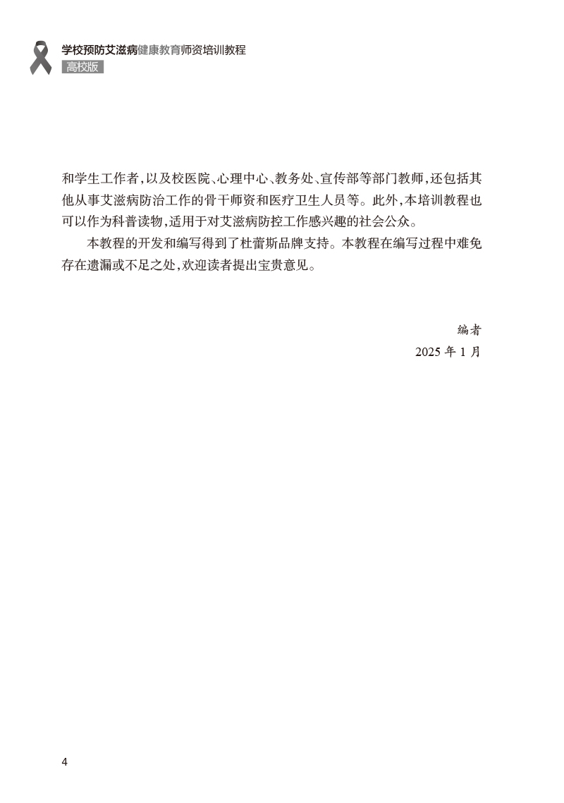 书名:学校预防艾滋病健康教育师资培训教程(高校版)