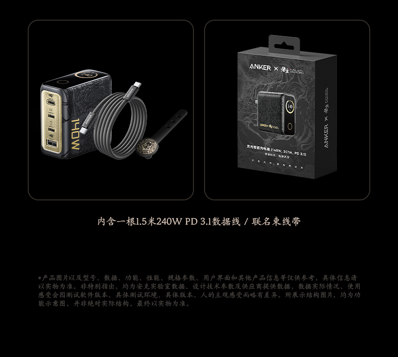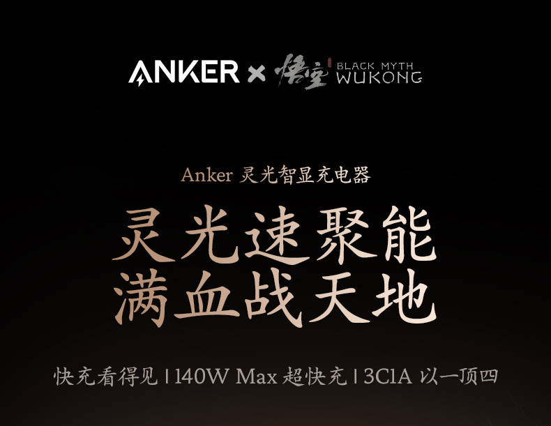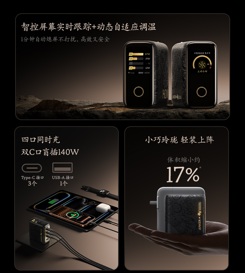 【新品】Anker安克 黑神话悟空联名系列 140W3C1A 灵光智显充电器 A2697