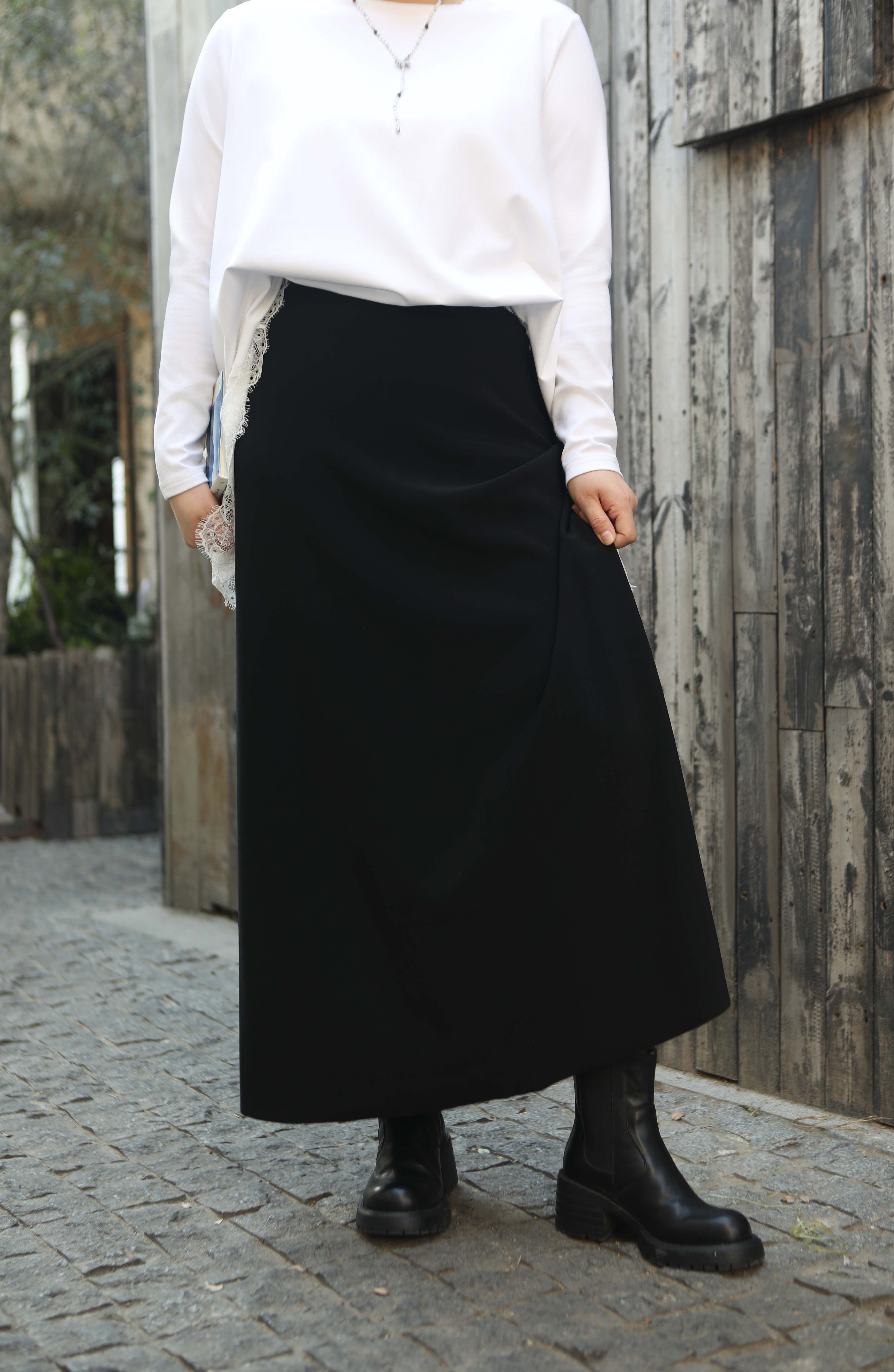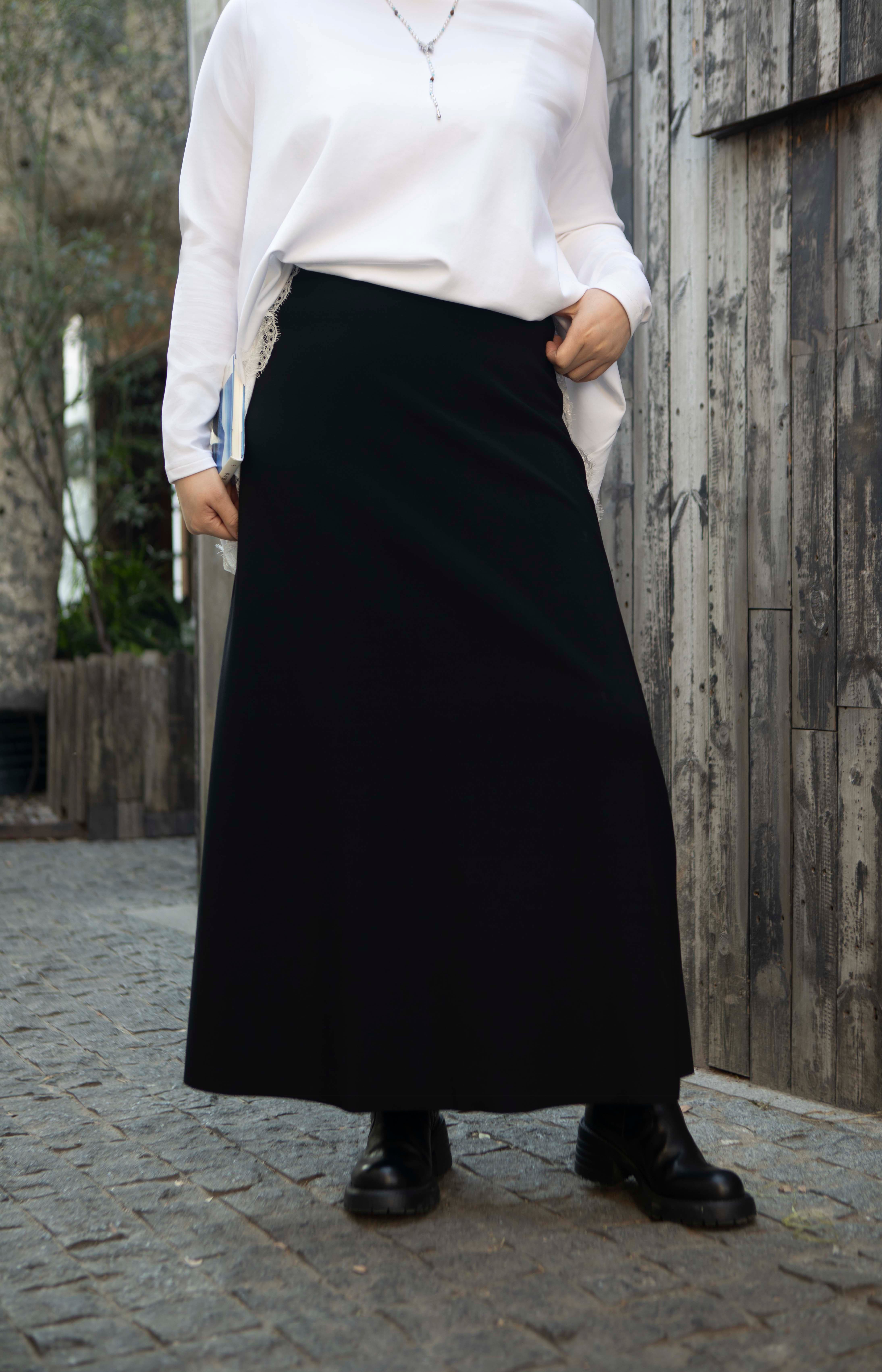 一周发货【薄绒长款半裙】「懒人凹造型」黑色及踝半身长裙|胸以下全是腿,小个子高妹都能穿的万能裙,可以穿冬春秋3个季节,韩国出口款,成分:聚酯纤维92% 氨纶8%,💞小个子姐妹可备注裁剪