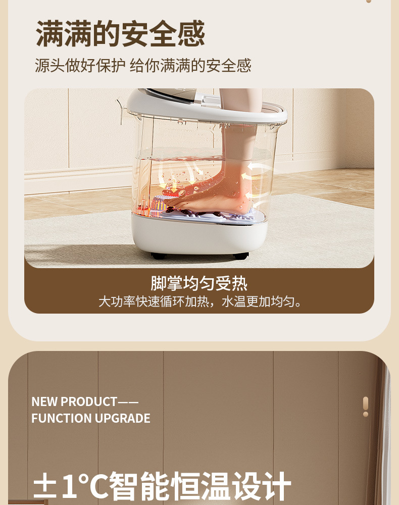 【足不出户,脚底按摩!】泡脚桶可拆洗 高深熏蒸桶 全自动电动按摩 恒温加热家用足浴器 洗脚盆-QA
