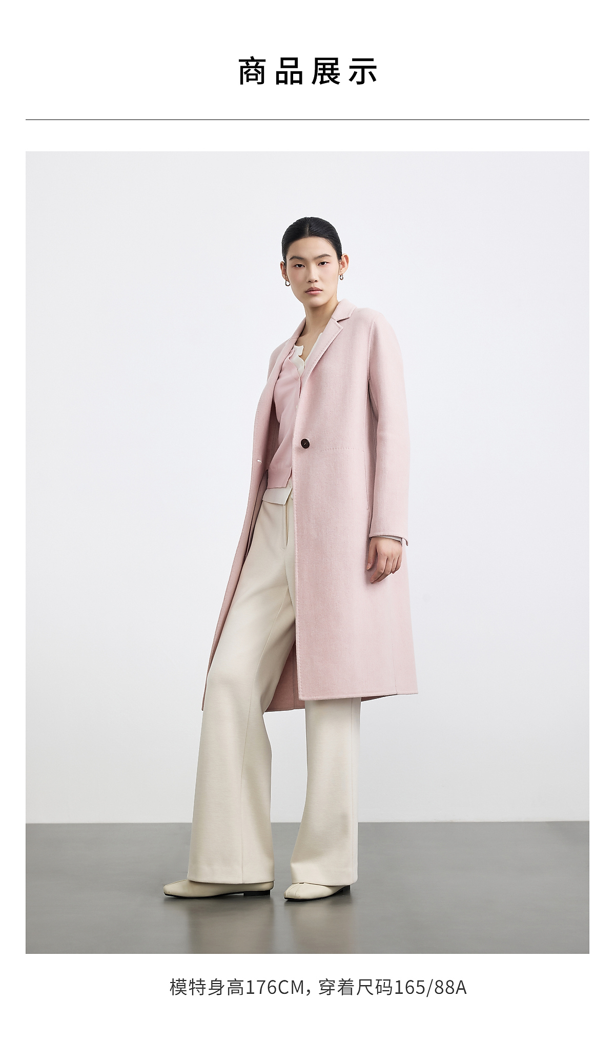 PURE TOUCH女装 25秋冬新款翻领纯羊毛大衣中长款毛呢外套
