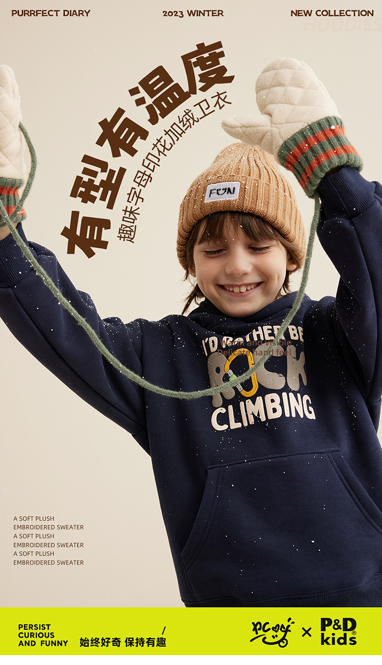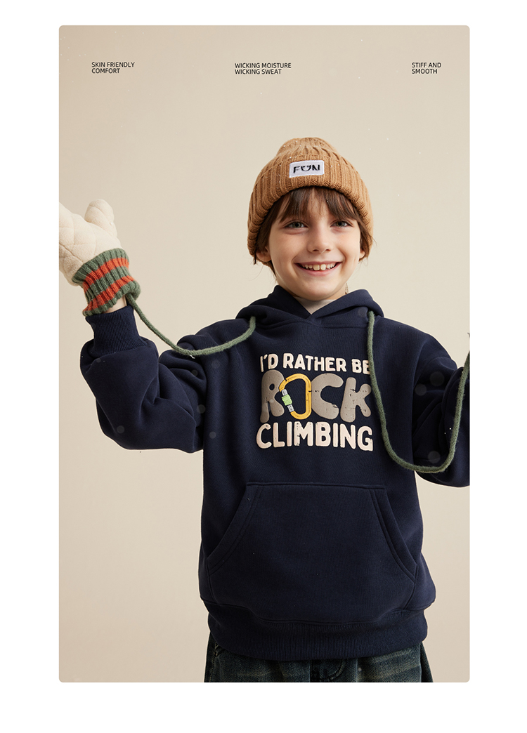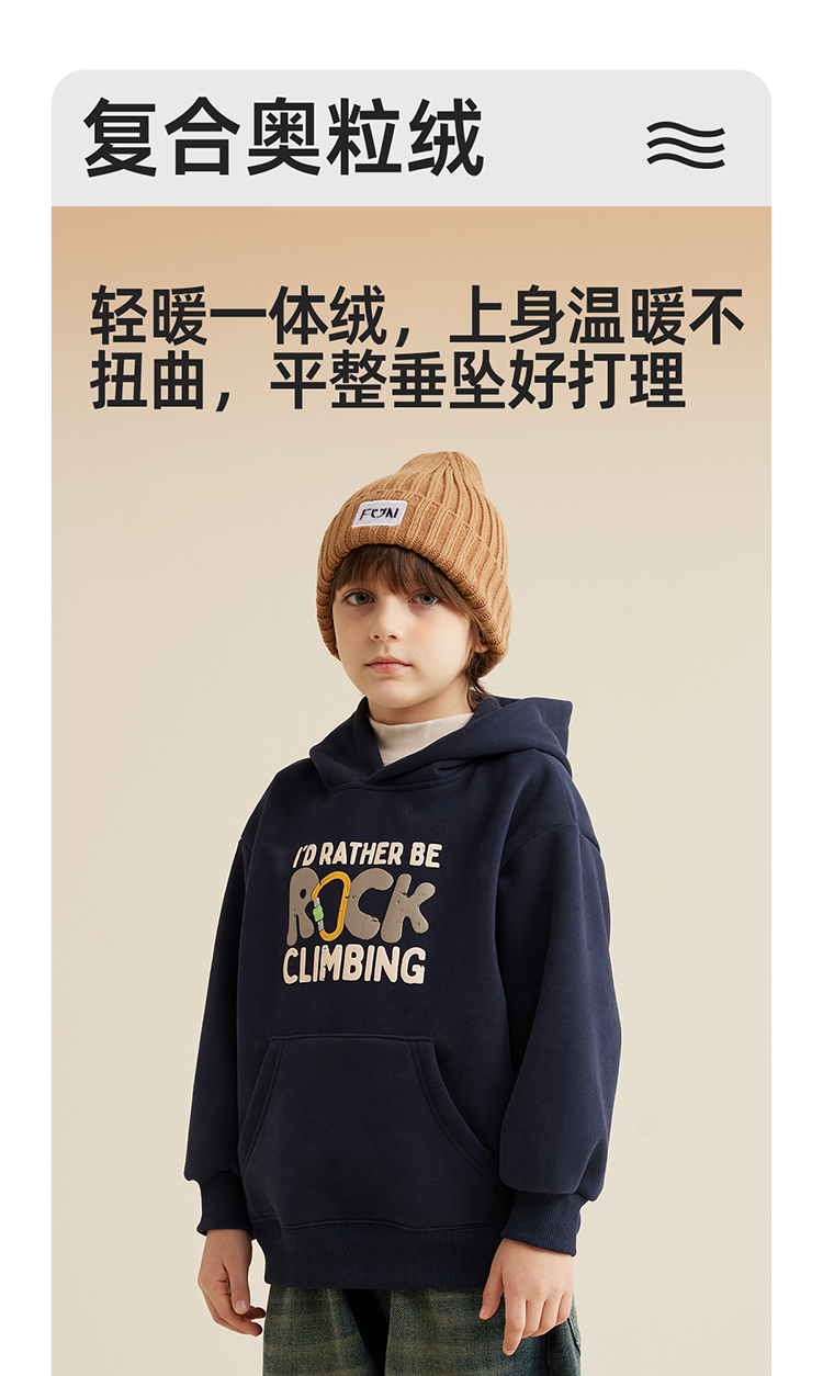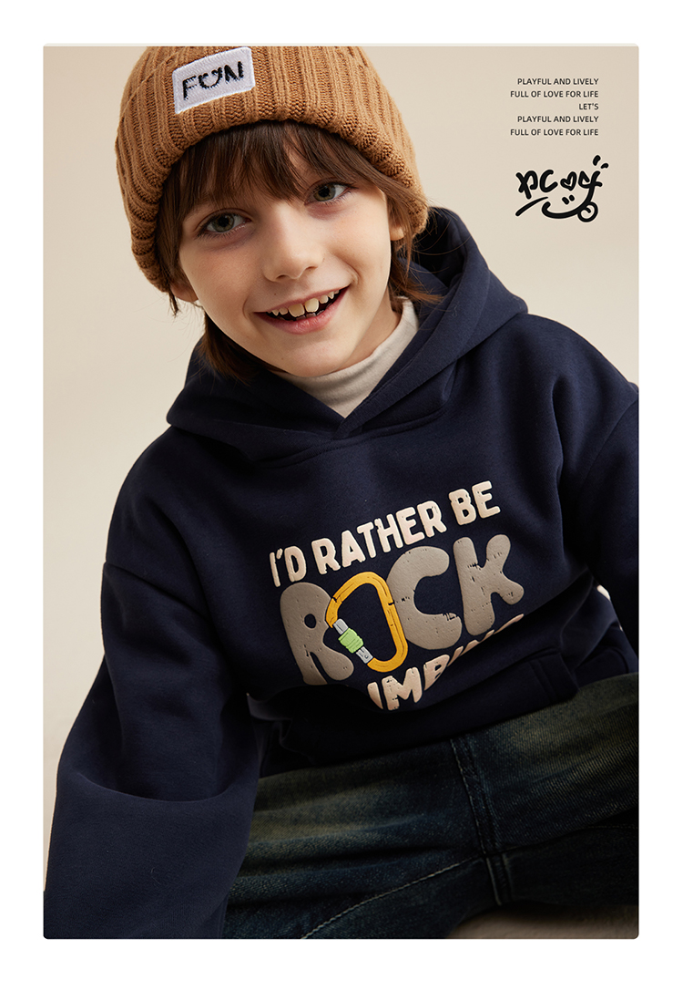 【秋冬上新】【轻暖一体绒 有型有温度】儿童趣味字母连帽加绒卫衣PDWY2301