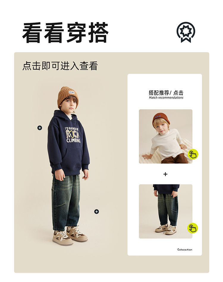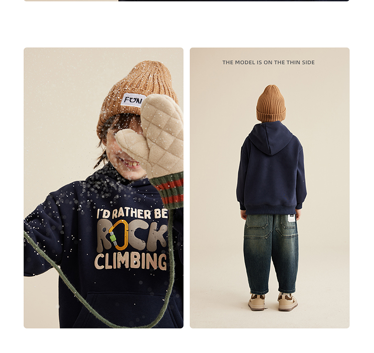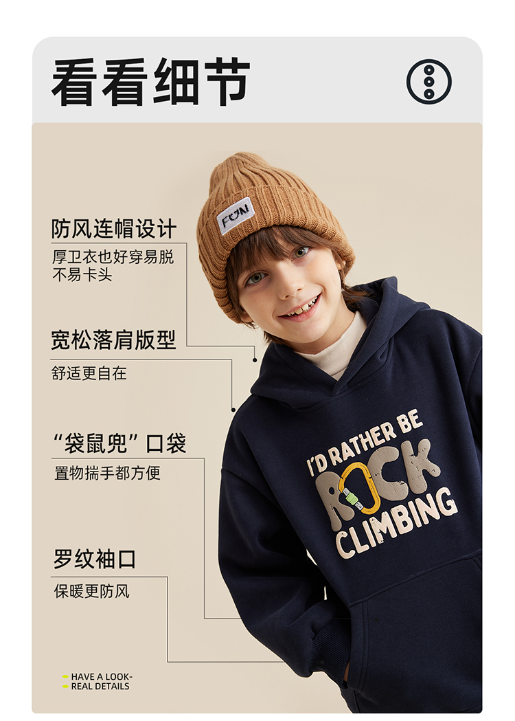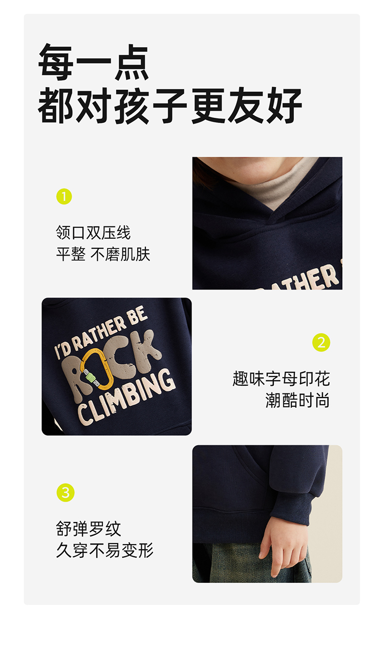 【秋冬上新】【轻暖一体绒 有型有温度】儿童趣味字母连帽加绒卫衣PDWY2301
