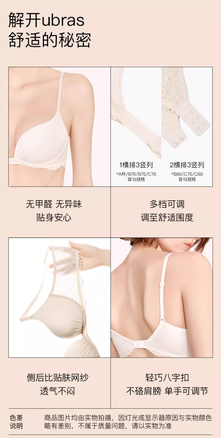 【小胸聚拢】ubras莫奈花园蕾丝深U聚拢文胸A-C杯✅层叠烂漫莫奈花园蕾丝,搭配灵动睫毛蕾丝,诠释朦胧美感 ✅礼服式造型,蕾丝配捏褶设计,简约时尚,完美复刻法式优雅