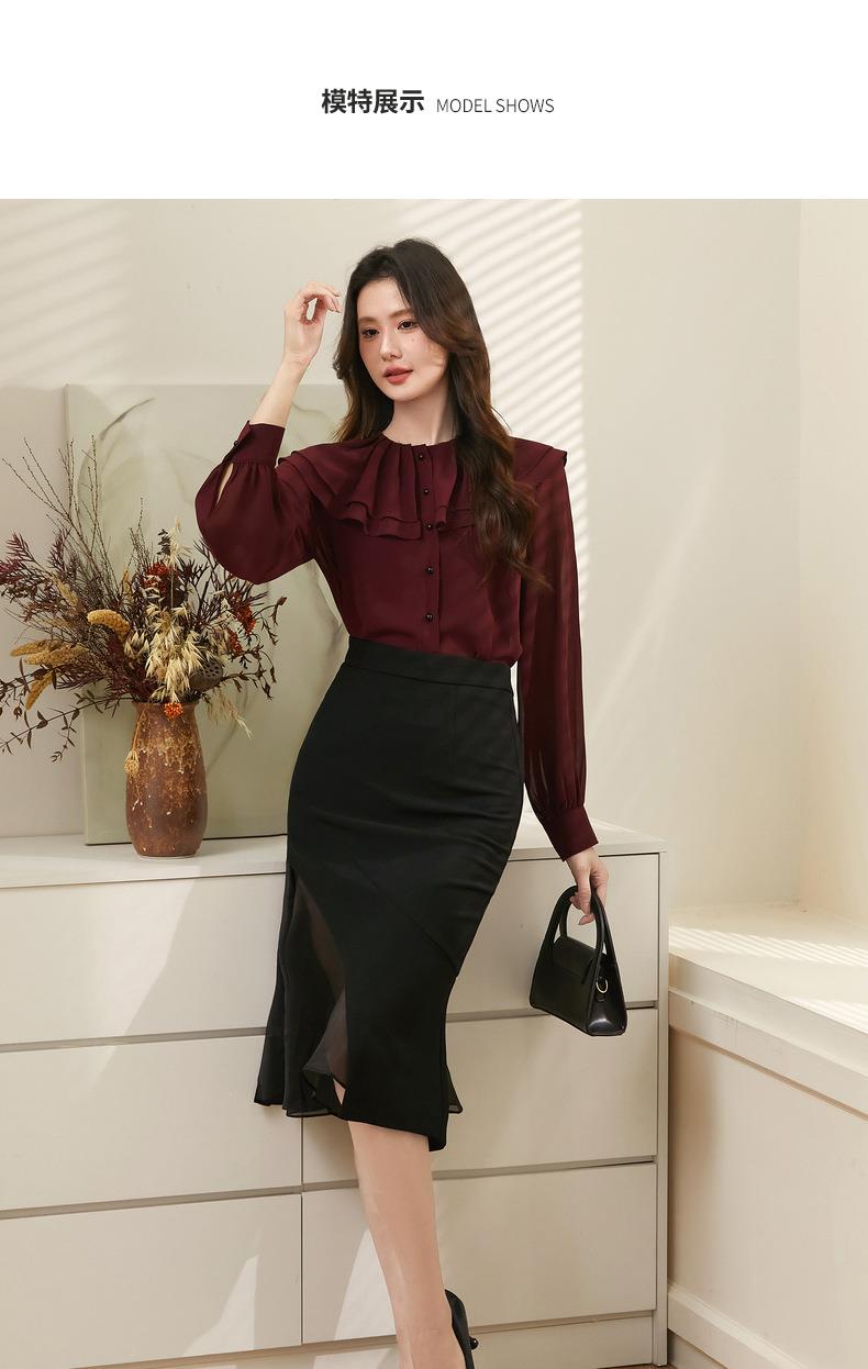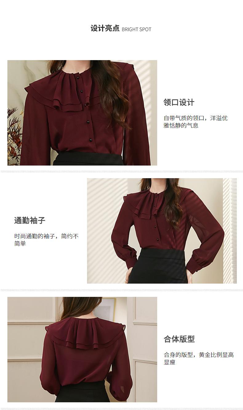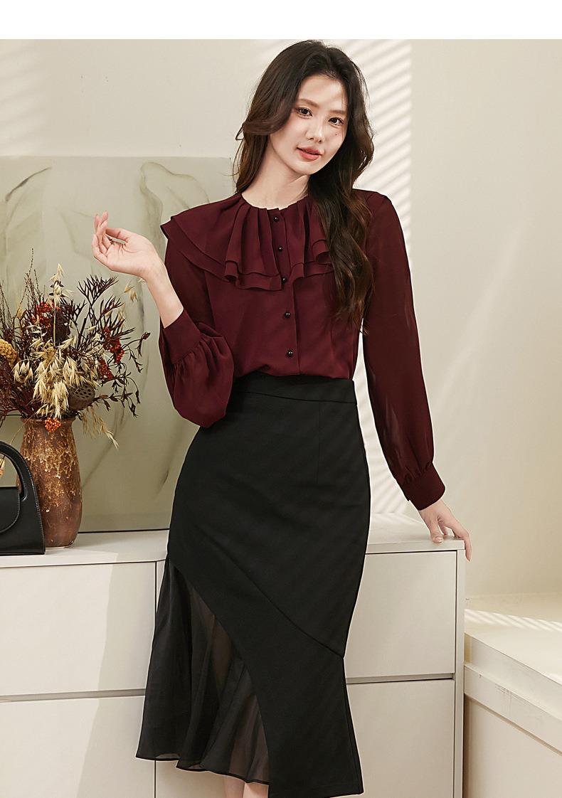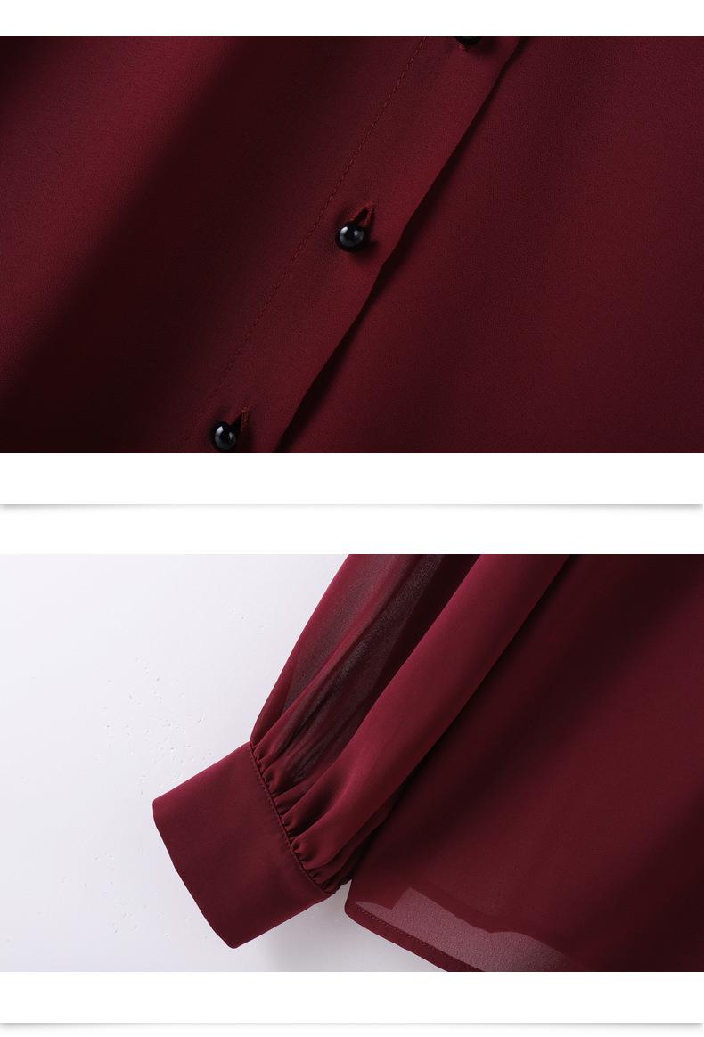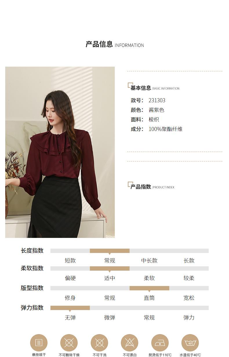 百姿 透视甜美长袖衬衫2023秋季新款气质翻领雪纺衫231303