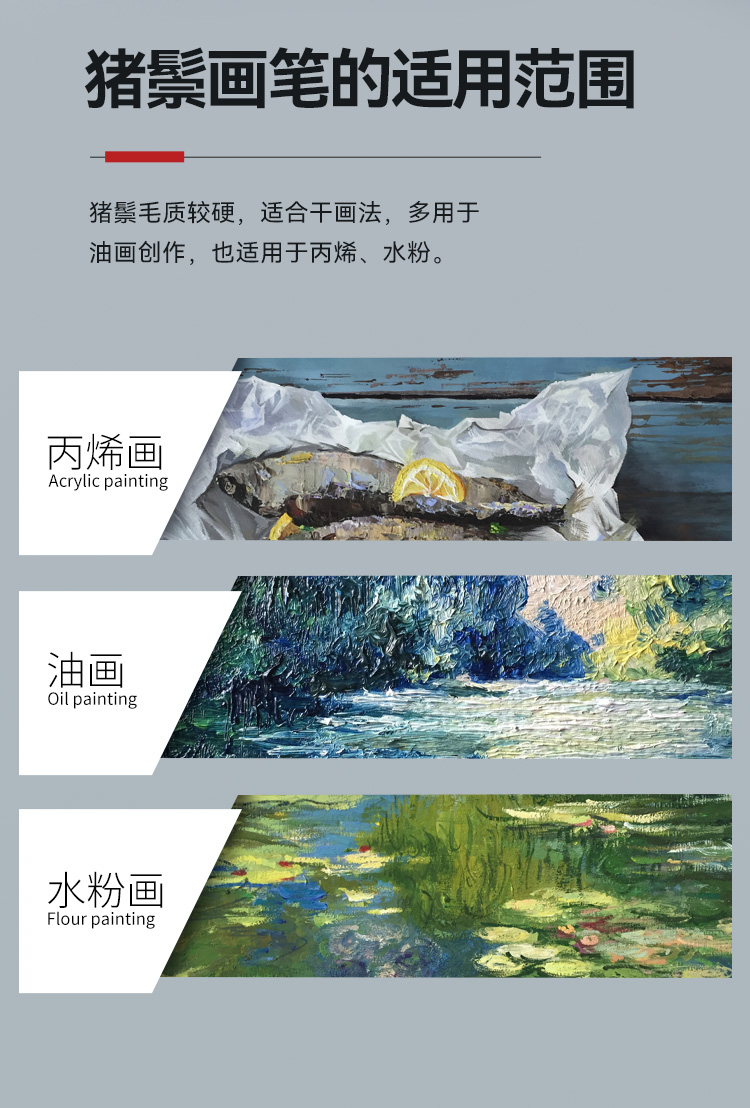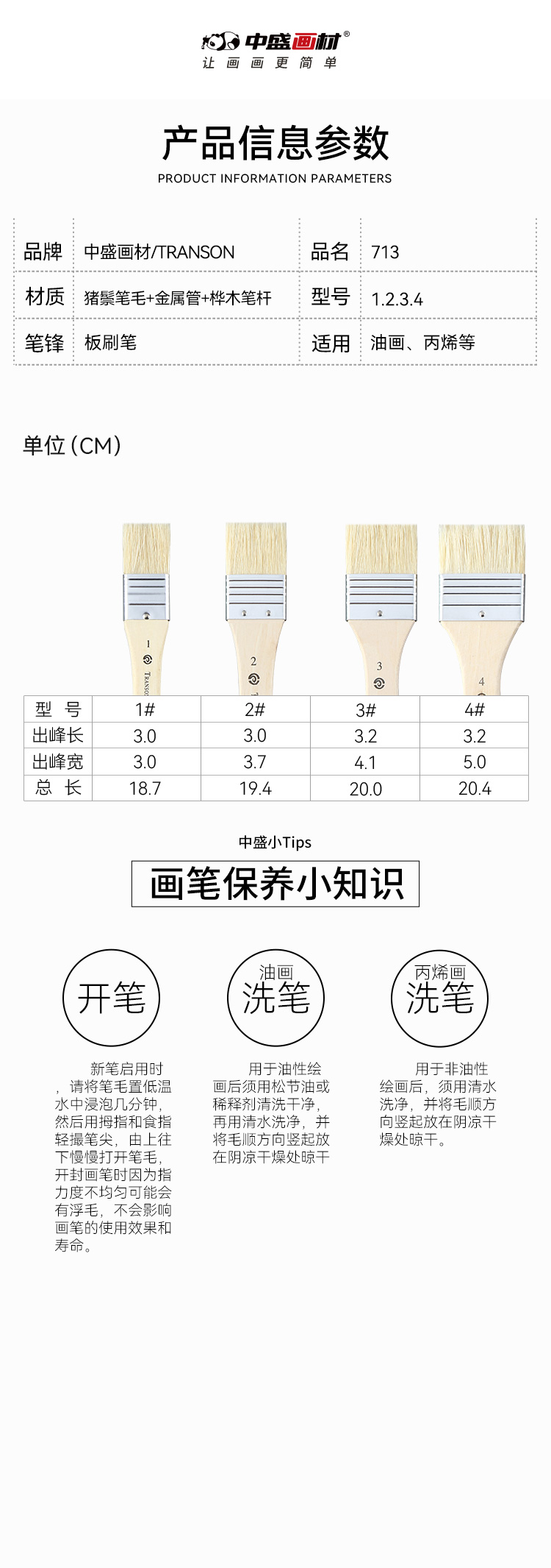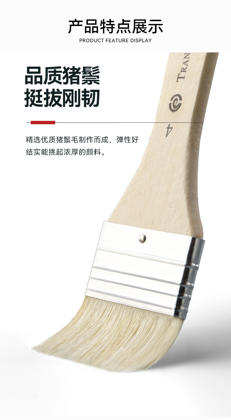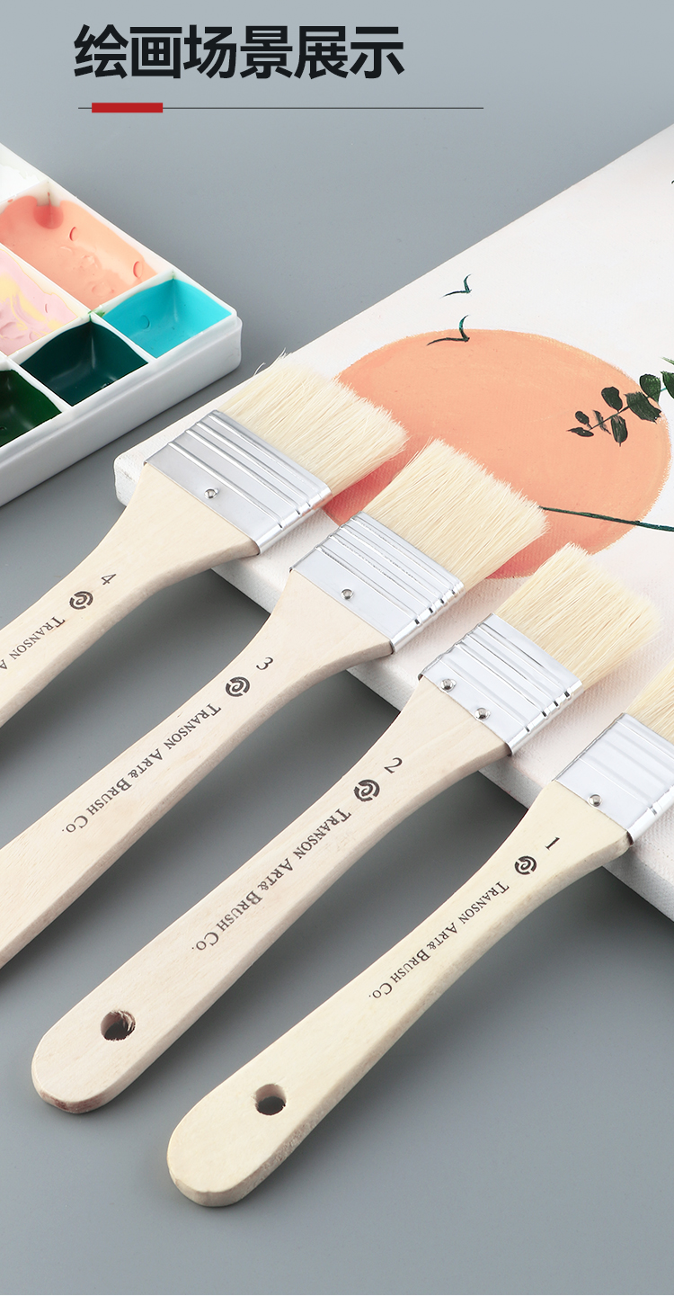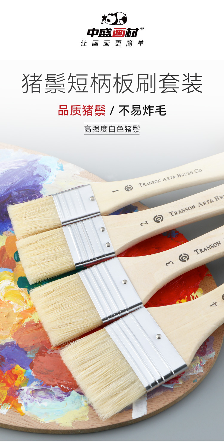 中盛画材713猪鬃短柄油画板刷 猪鬃笔刷绘画美术排刷丙烯墙绘刷