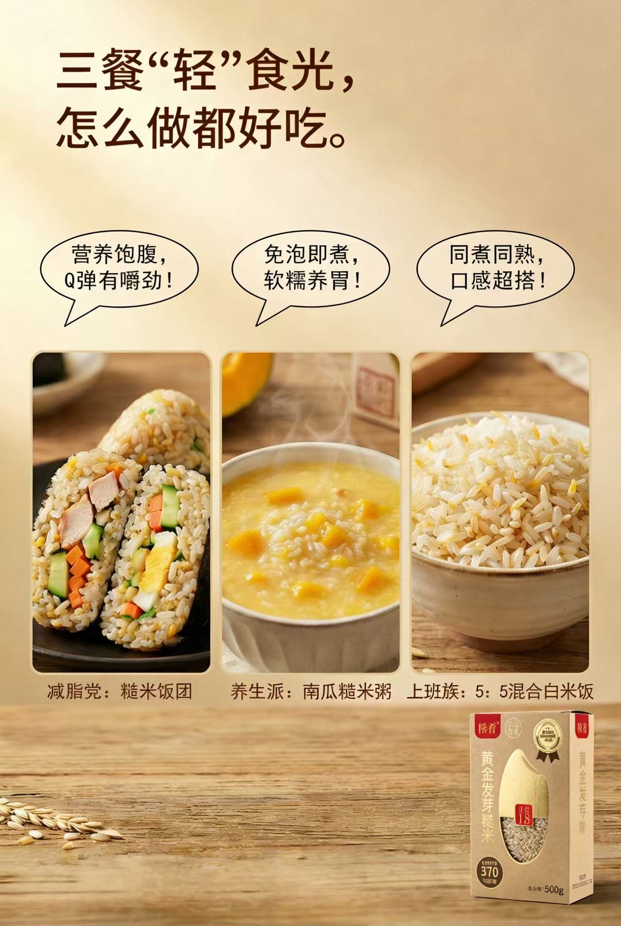 稼肴纤稻轻餐黄金发芽糙米ymj