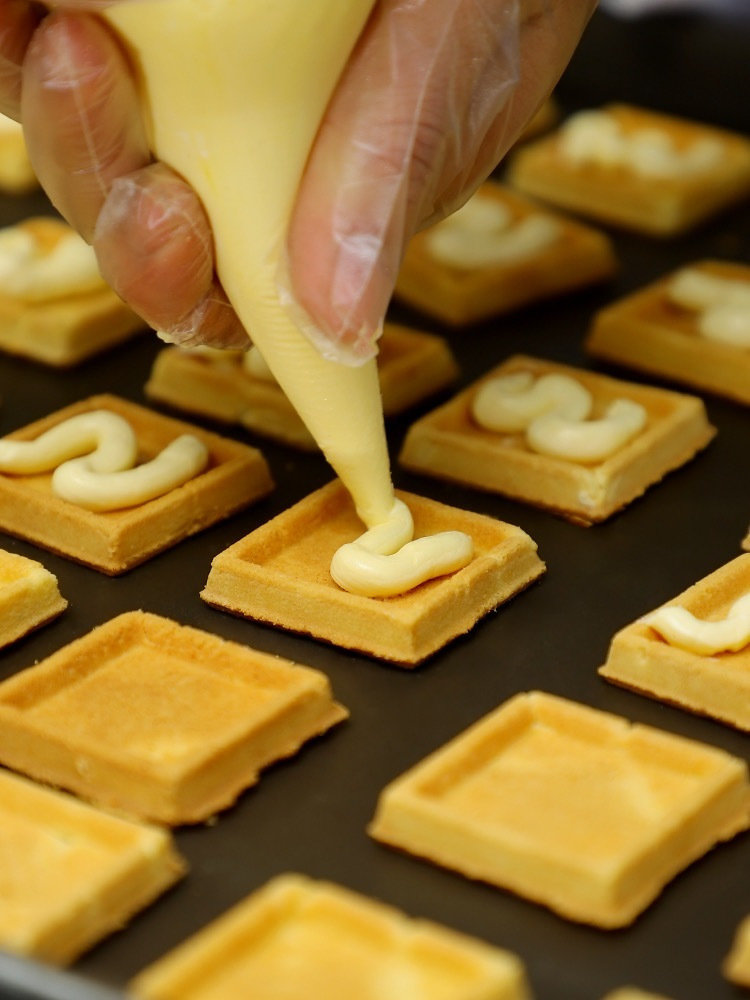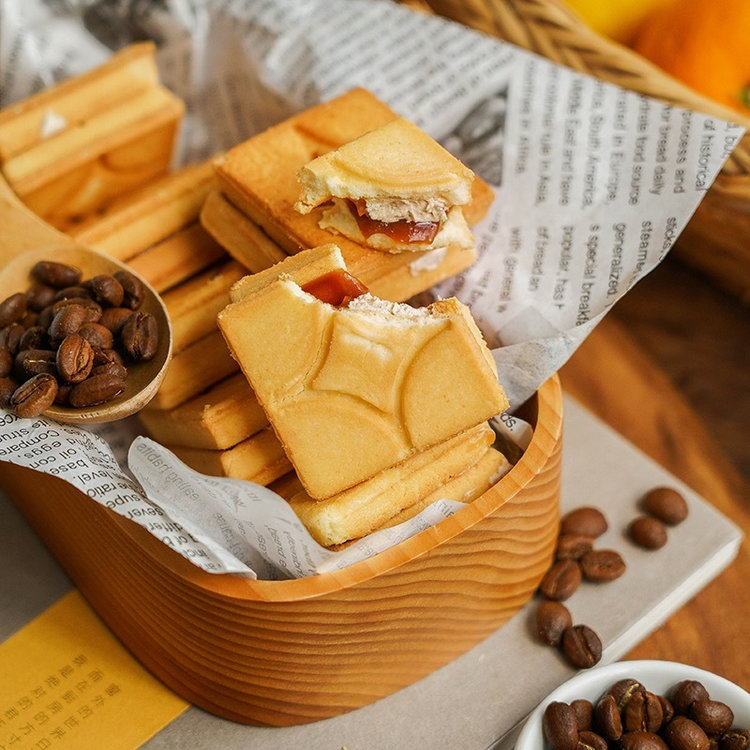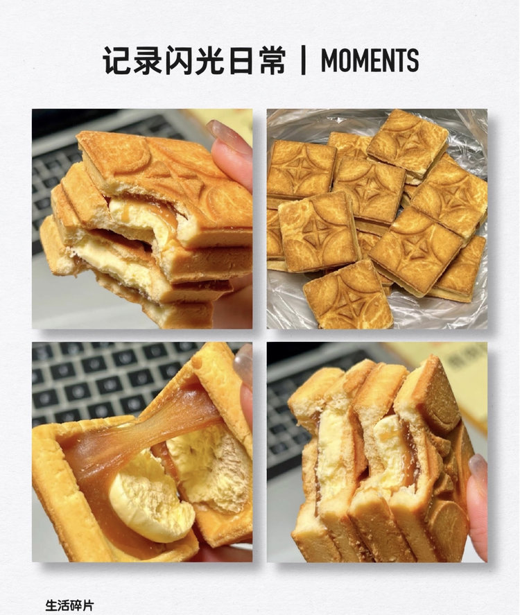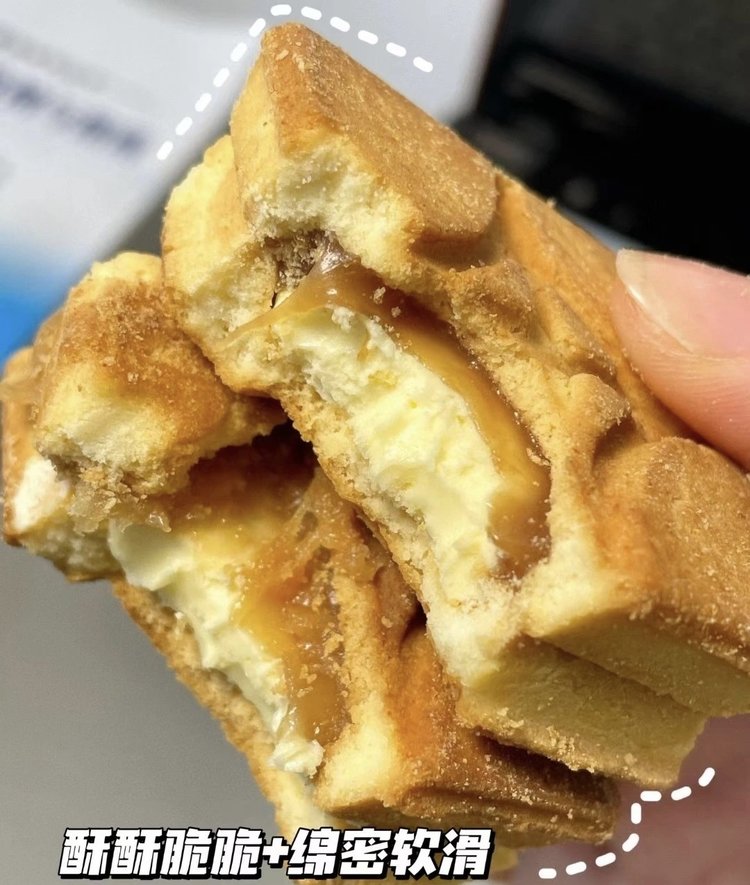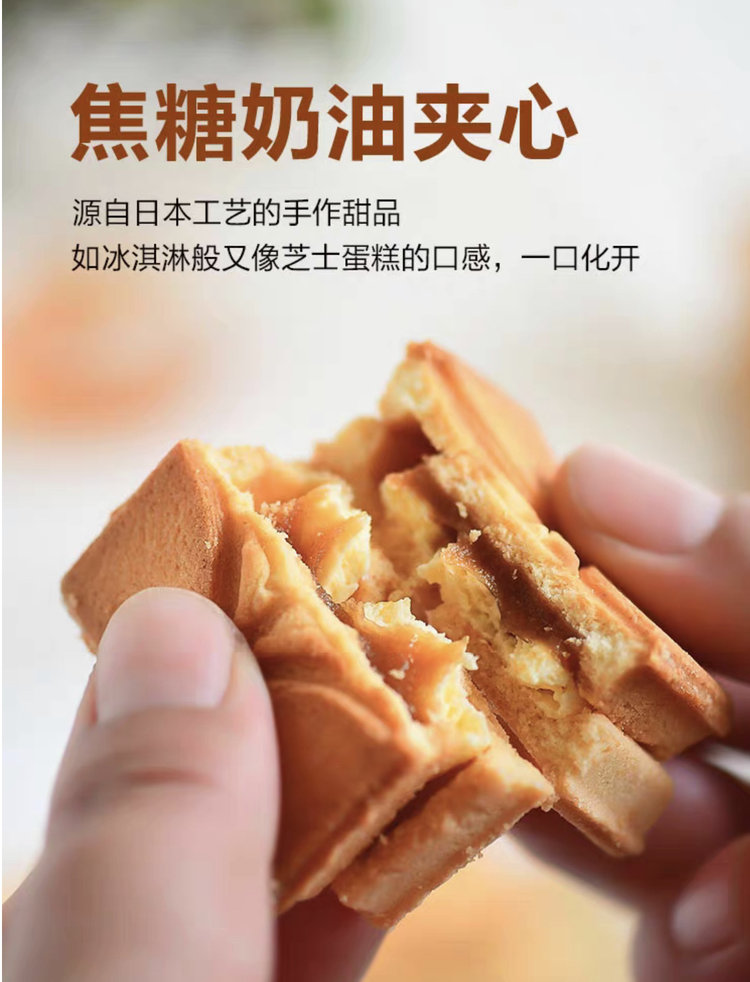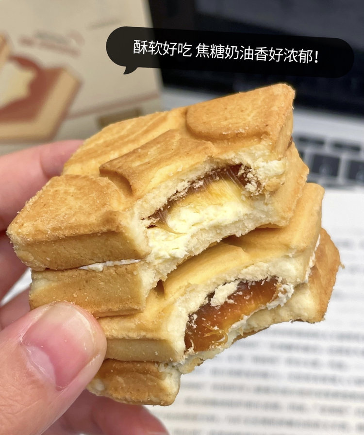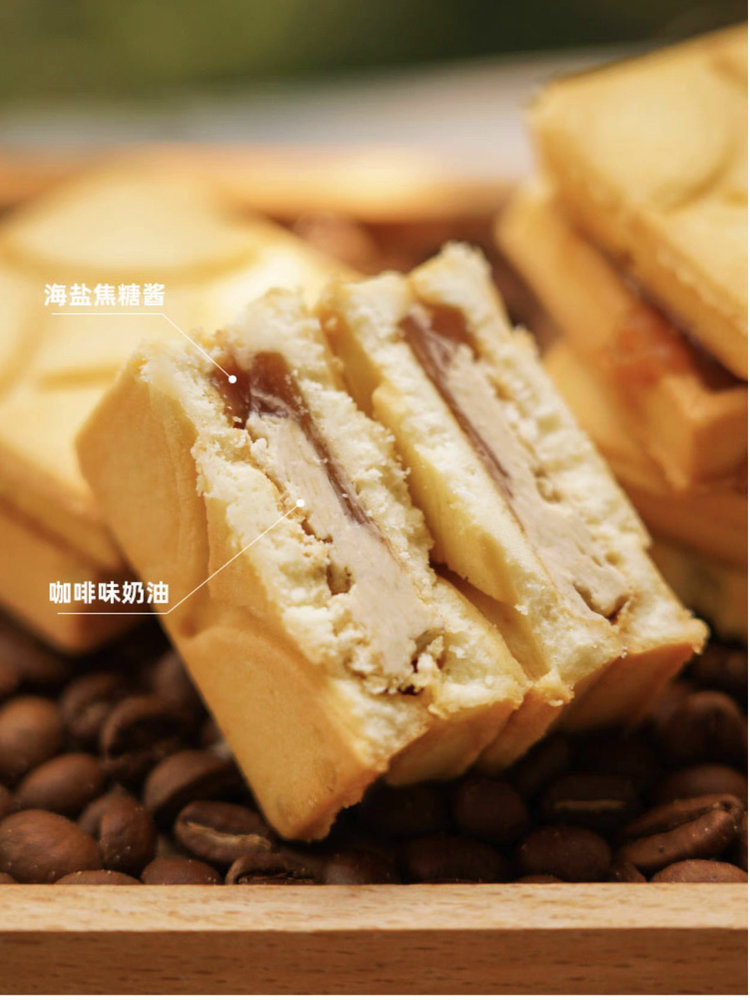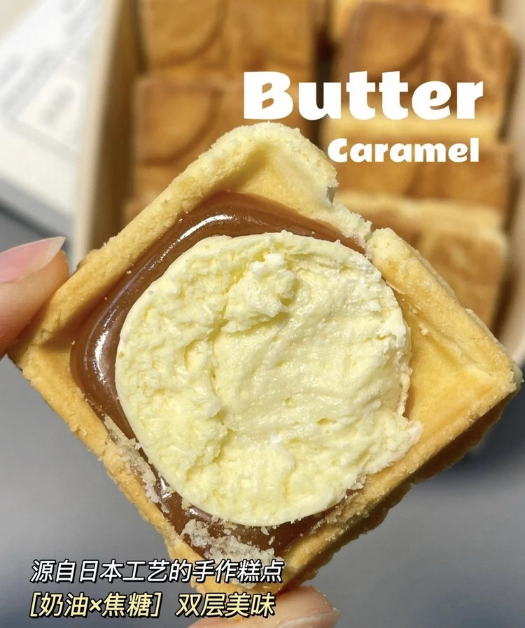 两层酥脆黄油饼干壳,夹上浓郁细腻的焦糖酱+特调黄油夹心,一口下去酥脆与绵软交杂在一起,层次丰富,回香特浓!