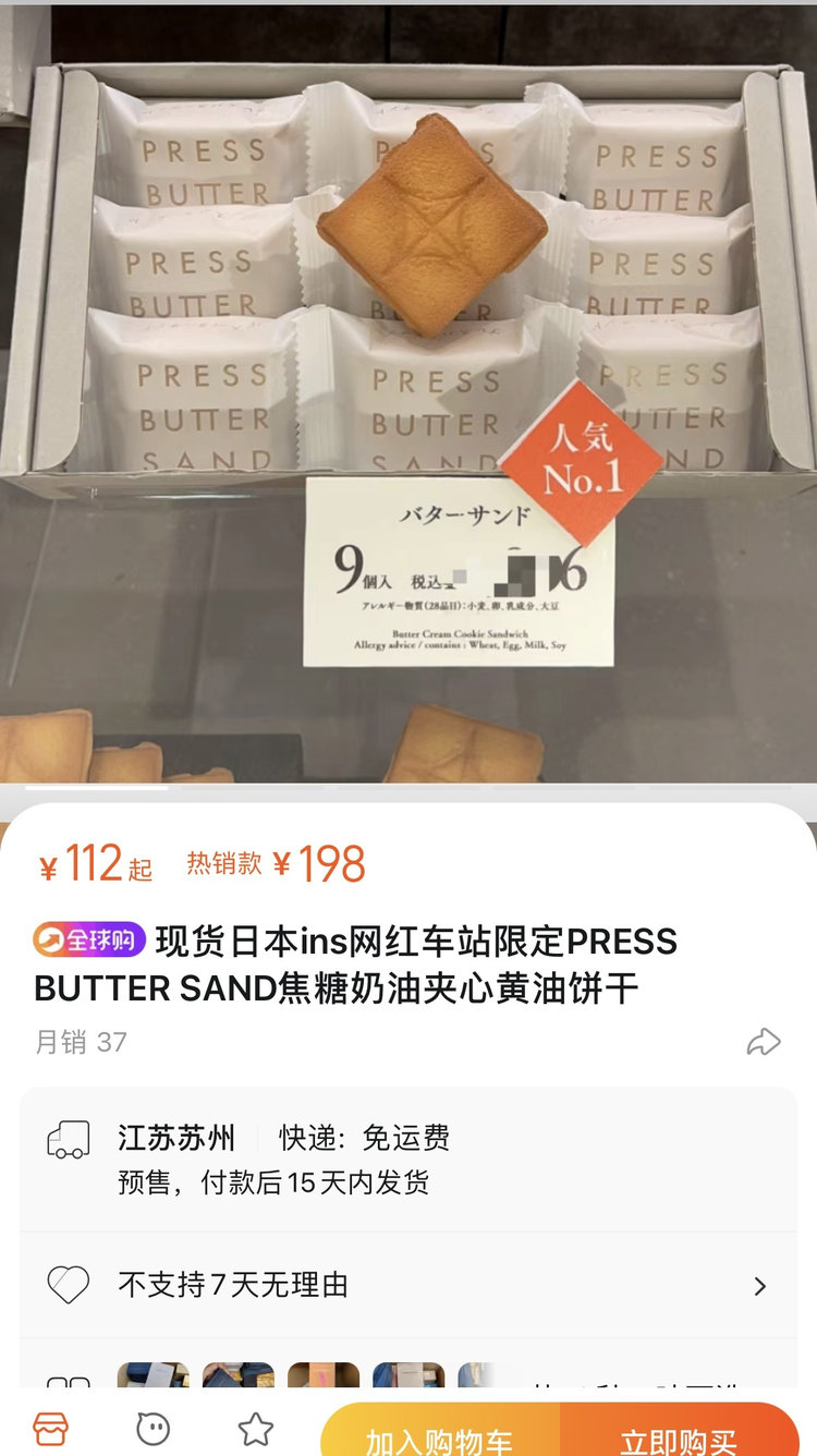 日本网红 PRESS BUTTER SAND 爆浆黄油焦糖奶油夹心饼干!目前代购价格约6枚/112,口感超级棒,在日本伴手礼中常年排行超前的