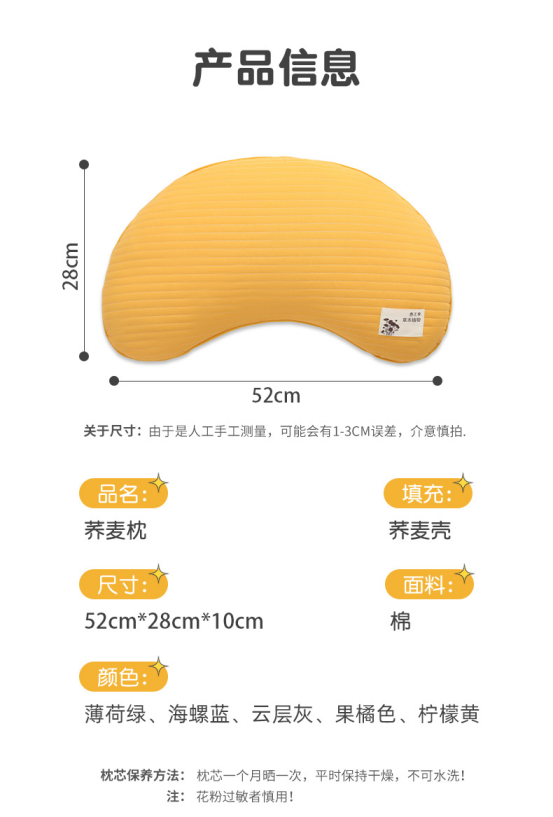 🔺选自大凉山天然优选荞麦壳 享受自然好睡眠 荞麦经过36道工序,层层筛选 荞麦成壳率≥90% 确保每一颗荞麦壳都透气、干燥、饱满 🔺贴合头颈曲线设计,造型时尚 能够完美贴合头颈的自然曲线 为颈椎提供精准支撑 无论是仰卧还是侧卧 枕头都能根据你的睡姿自动调整 帮助颈椎回归健康生理曲度 减少因不良睡姿带来的压力 整晚的温柔养护 让你在睡眠中不知不觉缓解颈部疲劳 醒来时倍感轻松,充满活力!