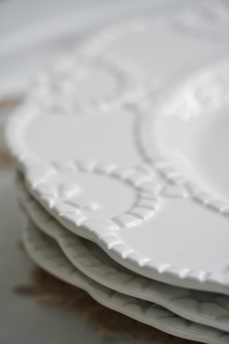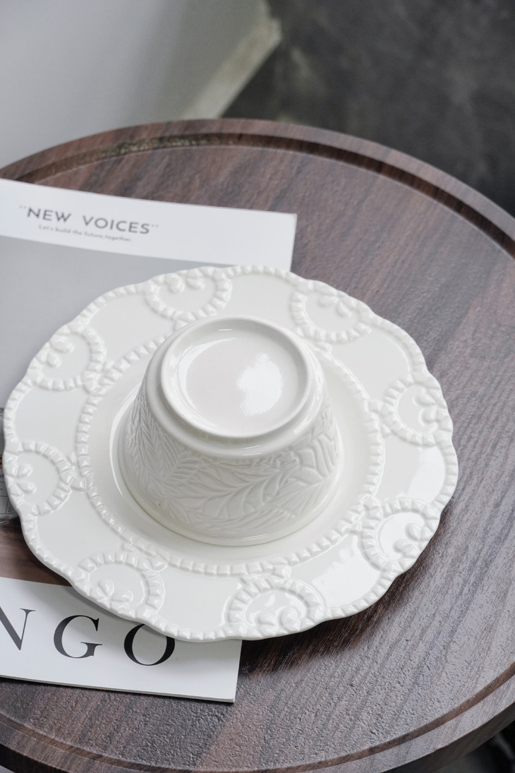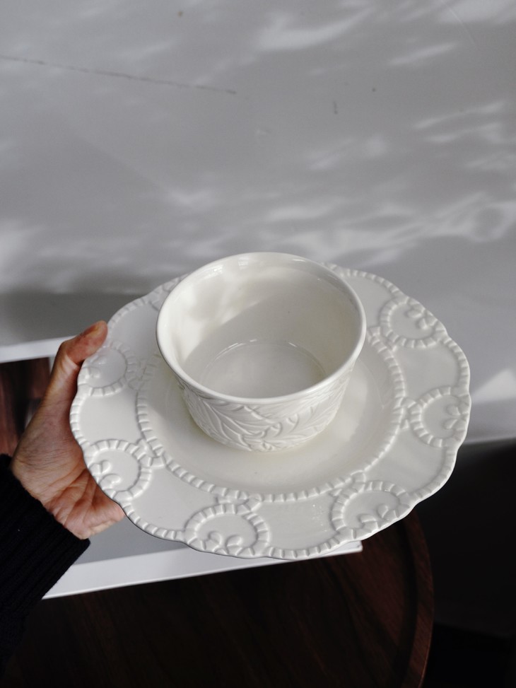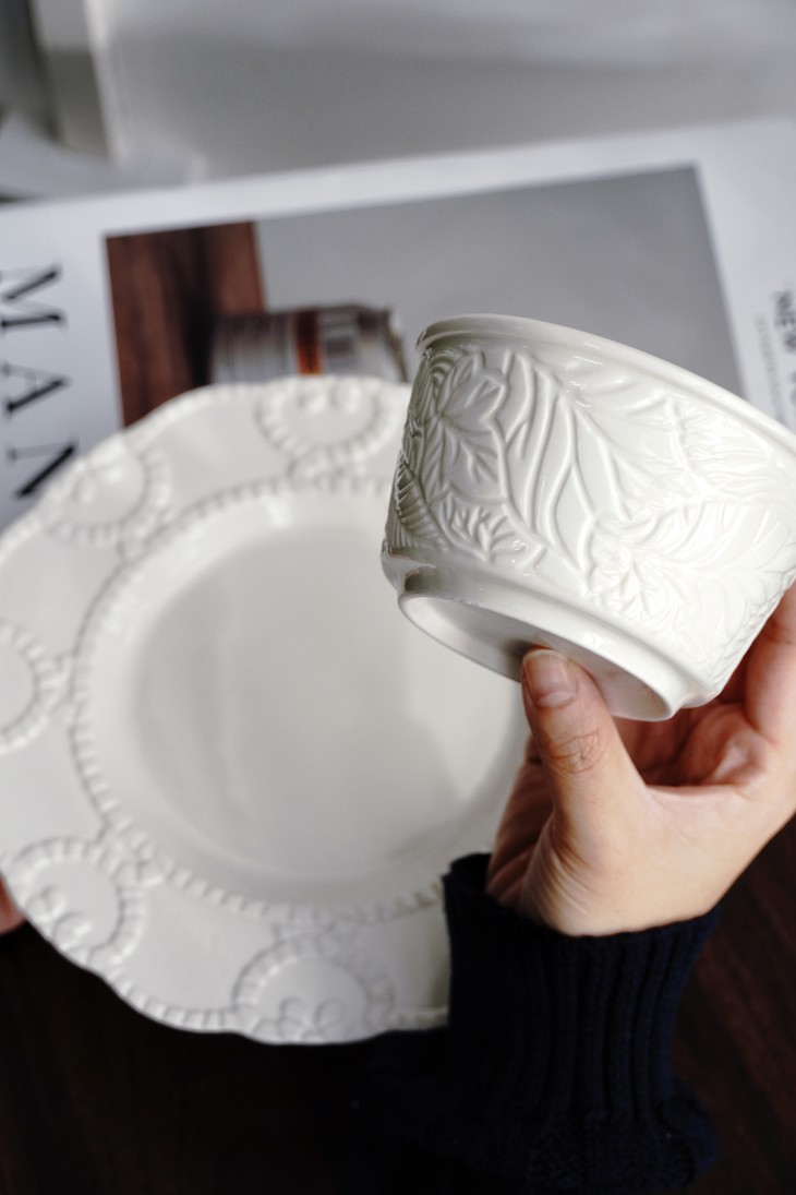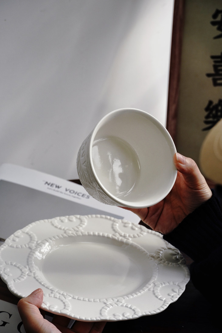 wind巴洛克浮雕餐具 与传统意义上的奢华繁复巴洛克不同 为了生活中的实用性没有运用到贵金属金银边、浓厚色彩手绘☝🏻 一组纯白高温釉下彩瓷具,可以随意的进出高低温环境,无惧洗碗机激水冲洗✔✔✔ 但以欧洲浮雕形式为灵感,再现了巴洛克式餐具的流动线条风格~~~