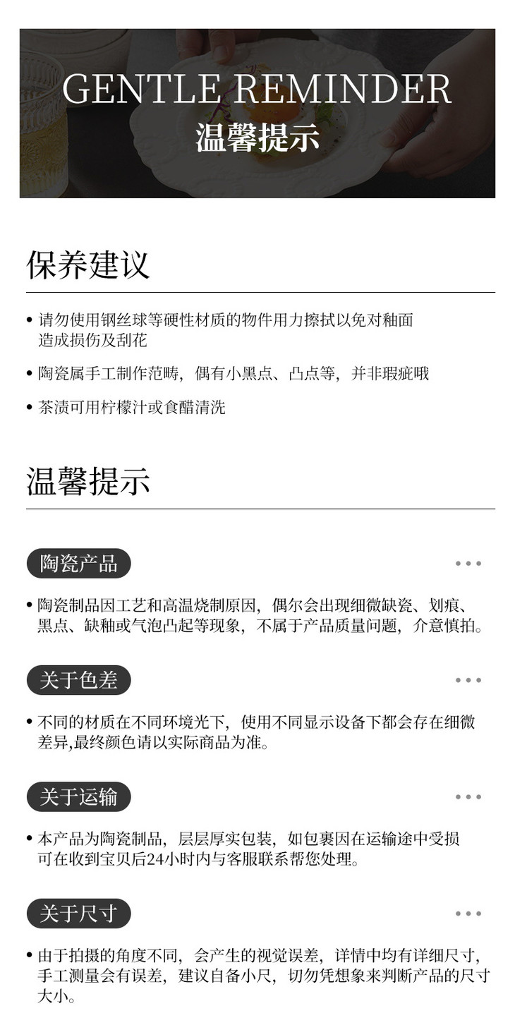 盘面细腻器型得体 光亮釉面温润手感 各种日常高温环境都可以使用 不掉色 无重金属等有害成分析出 🔺可以安心用于消毒柜洗碗机、烤箱炸锅微波炉