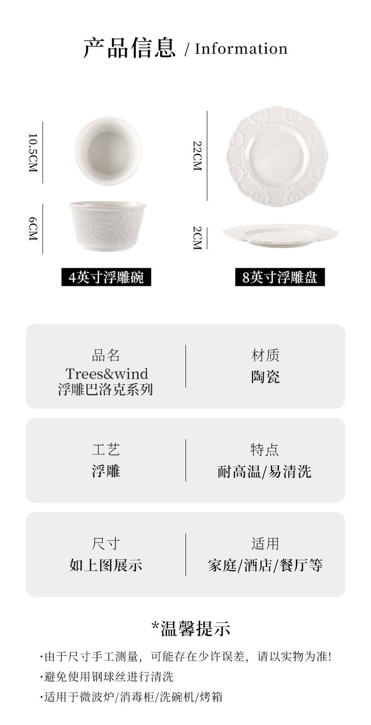 wind浮雕巴洛克餐具】 👉🏻8只碗 或 👉🏻4只碗+4只盘 💰29.9/39.9 两个规格可选