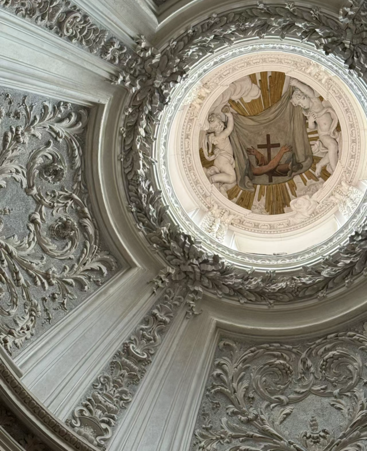◼◻ 意大利Baroque风格本意是对文艺复兴时期古典主义的修正 这一风格崇尚视觉冲击力和对比,韵律感以及空间的穿插 它反对僵化的古典形式,追求自由奔放的格调和表达世俗情趣 所以装饰华丽、曲线繁复、强烈色彩对比是巴洛克的主要特征 审美情趣太太太高了 十七八世纪的欧洲宫廷、教堂至今都代表着人类最高的建筑美学水准 咱们的家装、餐具设计哪怕只有千分之一的承袭也都很漂亮了