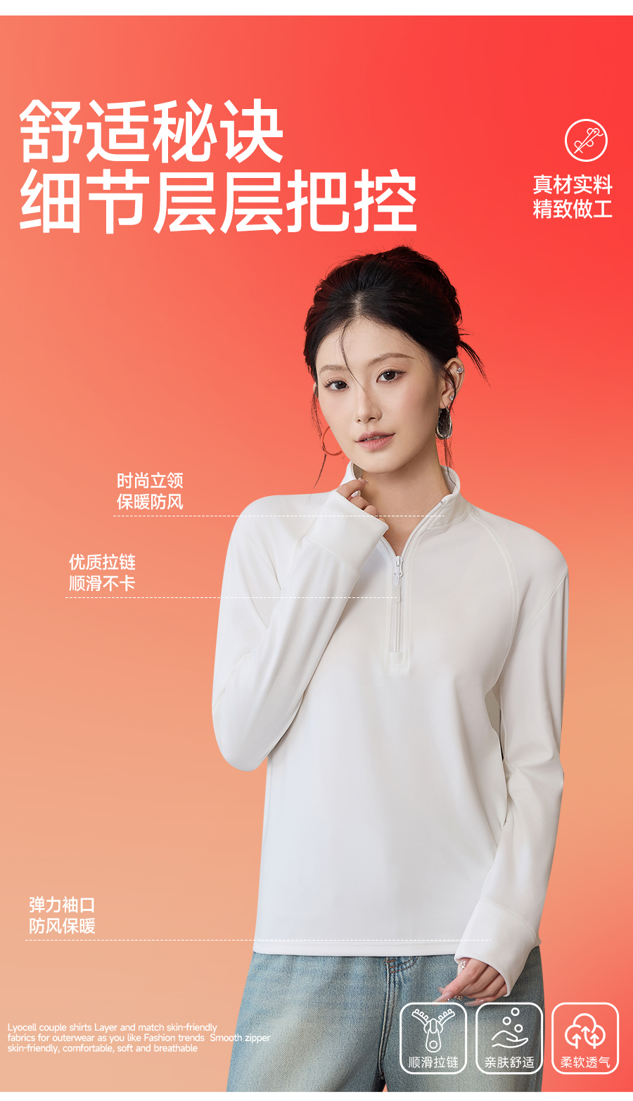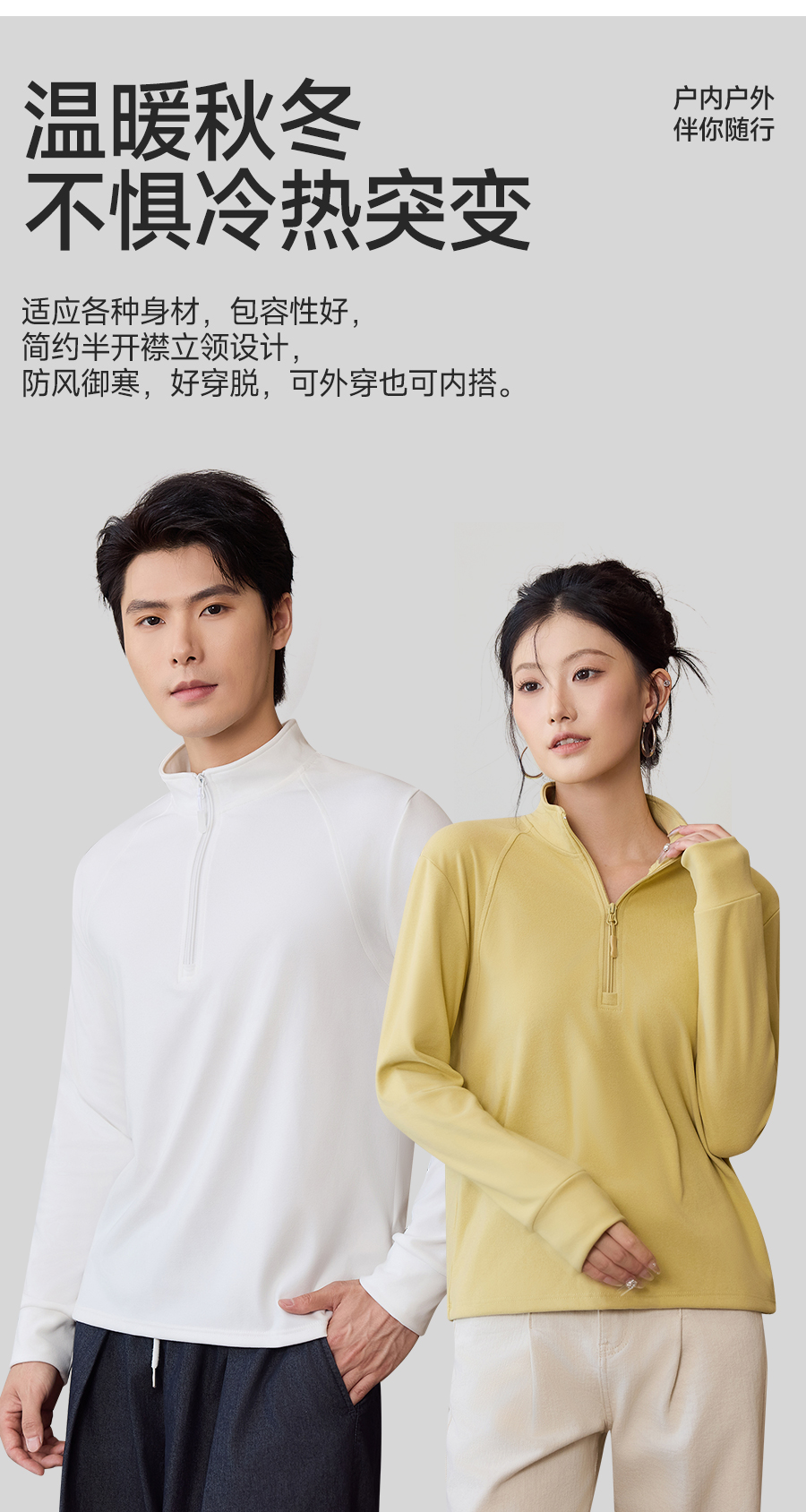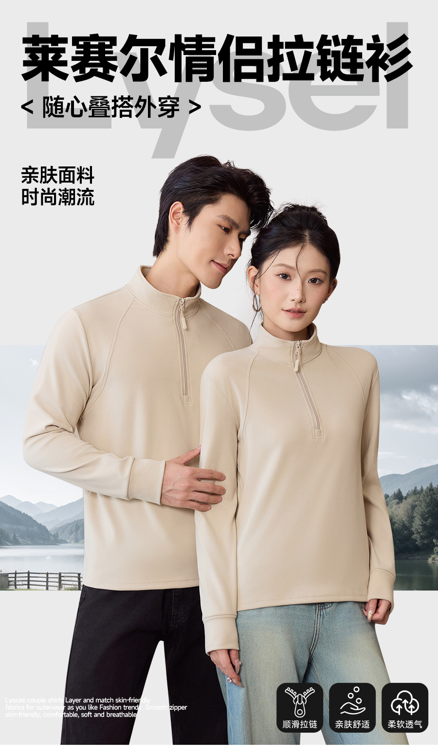 【莱赛尔休闲情侣款拉链衫 】保暖不臃肿 半门襟立领设计 叠搭外穿