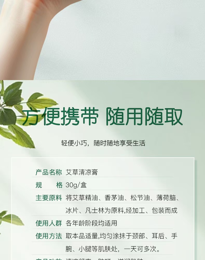 热卖中!!【夏日皮肤烦恼一盒搞定】艾草清凉膏春夏防蚊 清凉 泛红起包 发红儿童家用止痒抗菌草本成分敏感优选全家适用