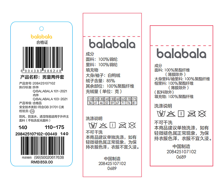 巴拉巴拉balaOne童装儿童羽绒服男童女童2025冬季加厚保暖两件套