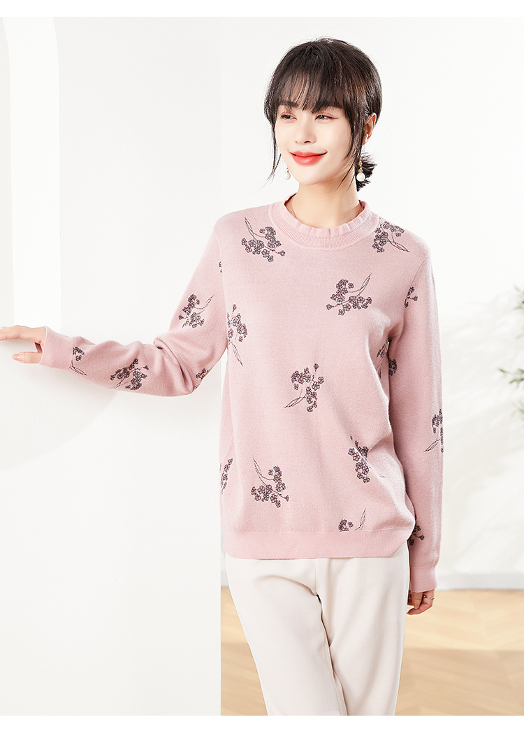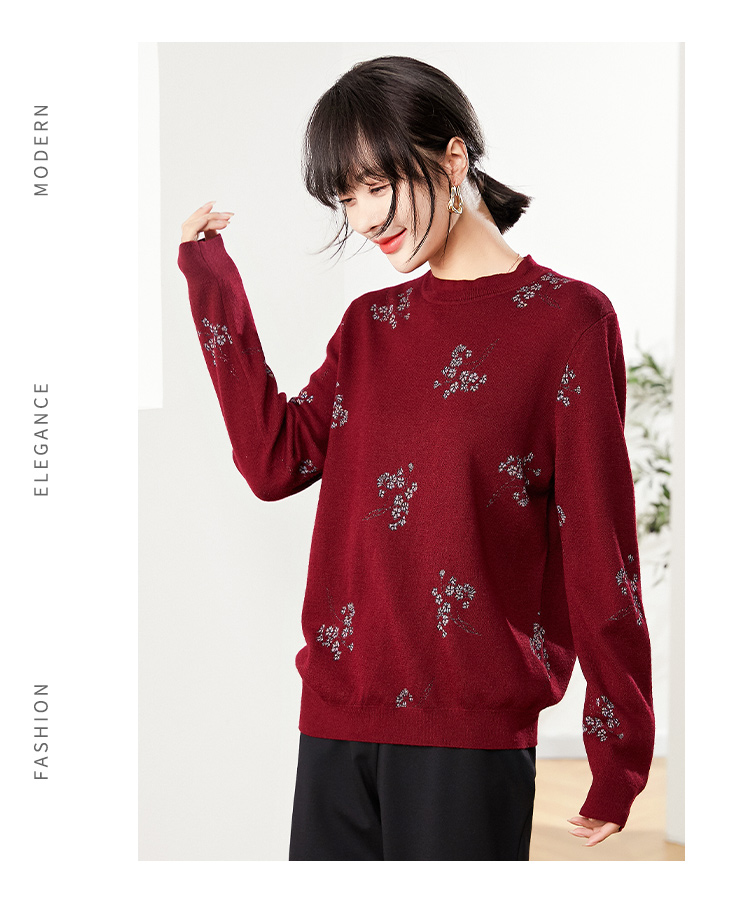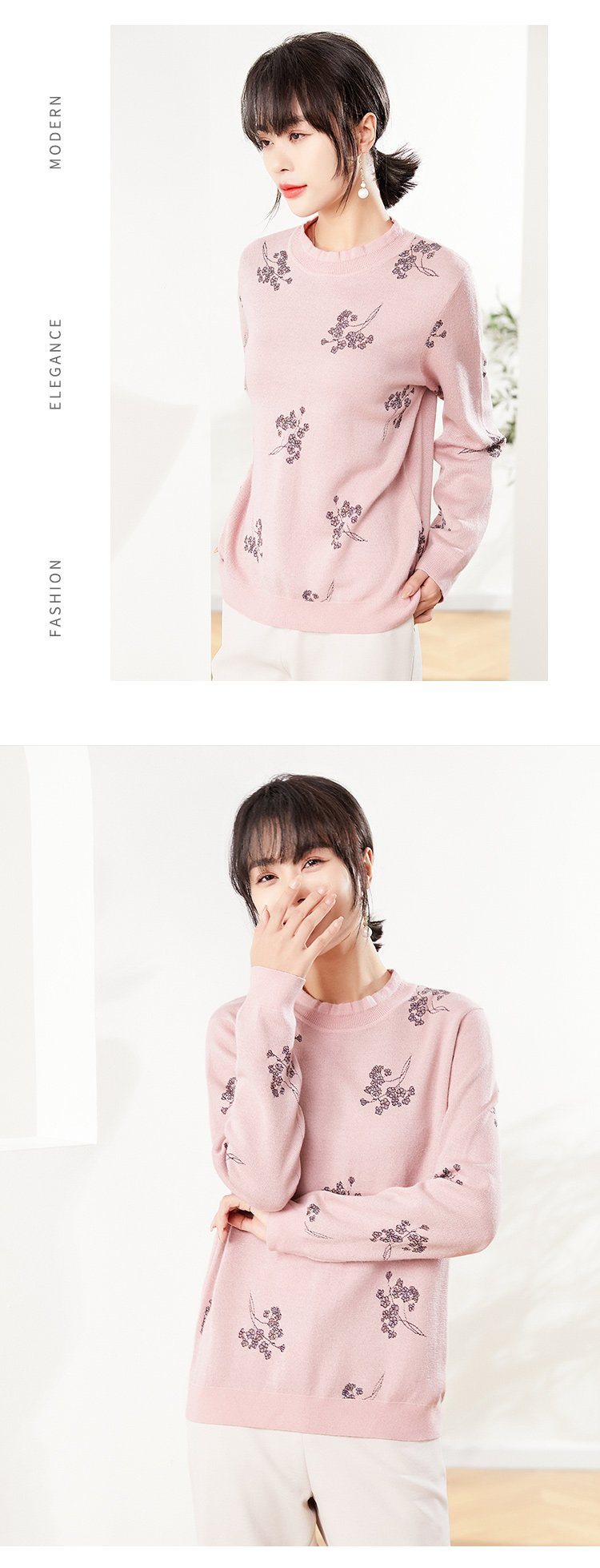 佐尔美秋季新款 纯色气质圆领羊绒衫女E14MS04