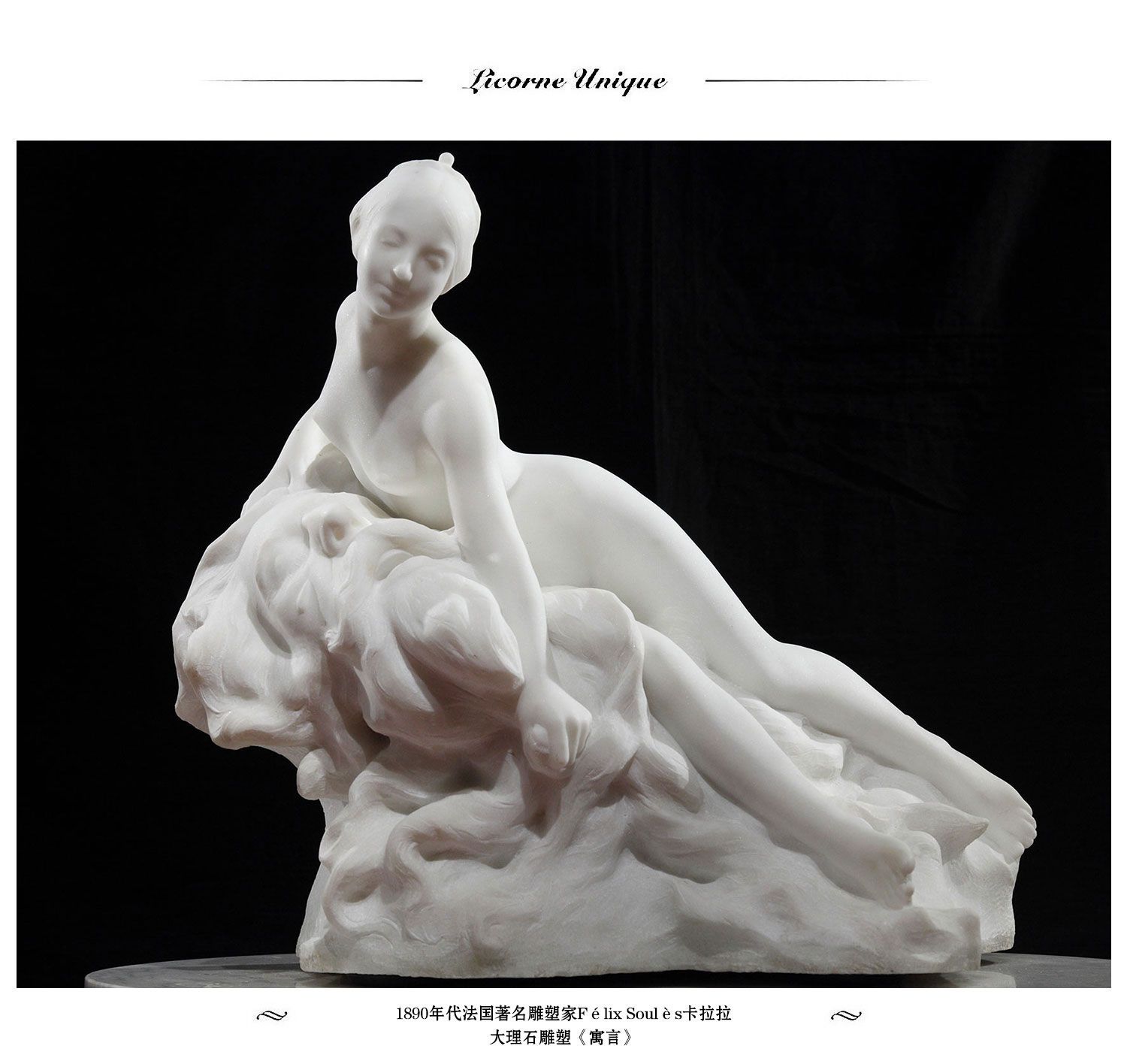独角鹿西洋古董雕塑法国著名雕塑家作品卡拉拉大理石雕塑《寓言》
