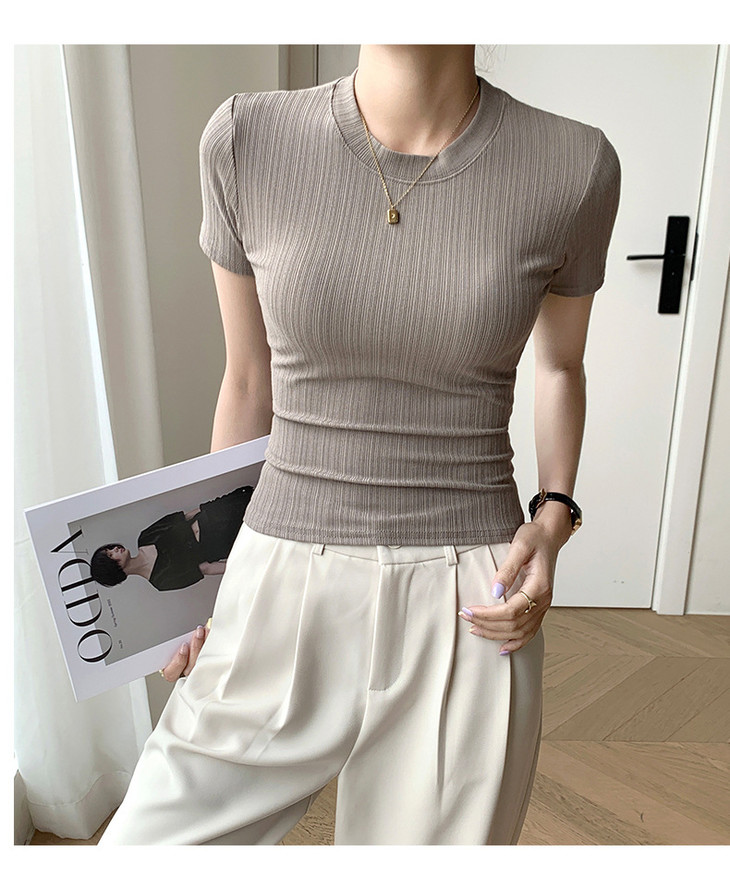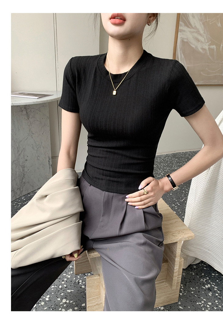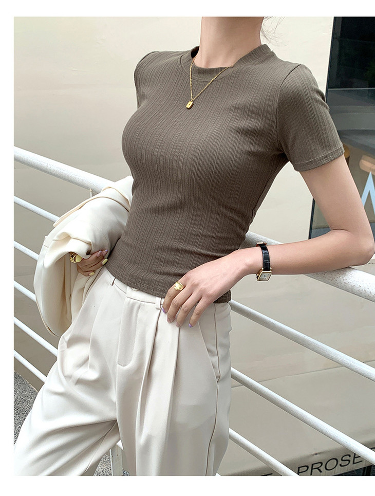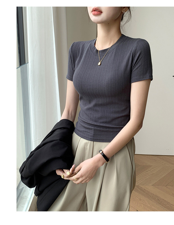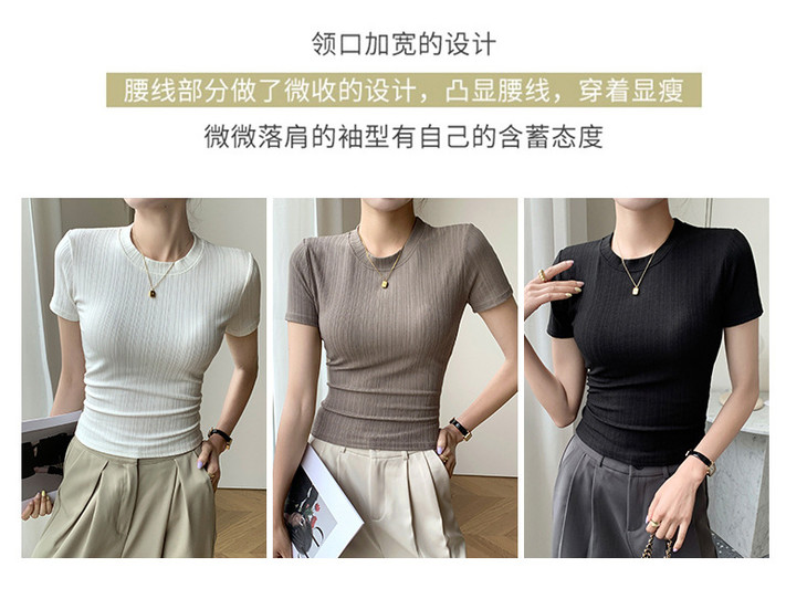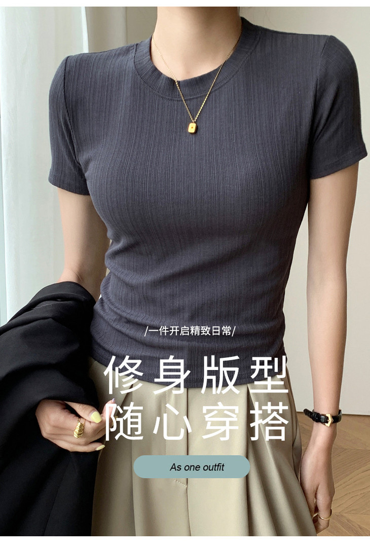 买1送1 新款圆领体恤女夏季上衣休闲短袖t恤百搭透气女装修身打底衫