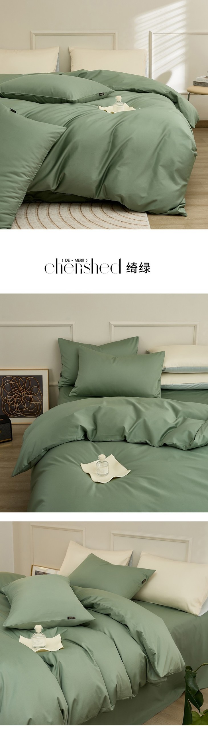 【四件套纯棉全棉冬被】北欧风100支长绒棉简约纯色床上被套