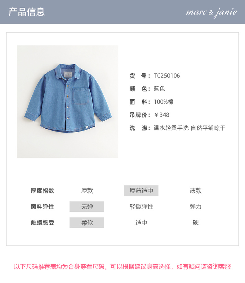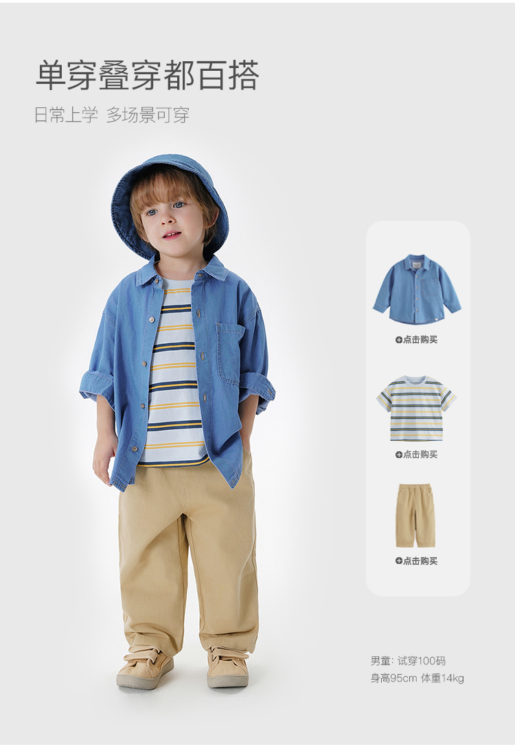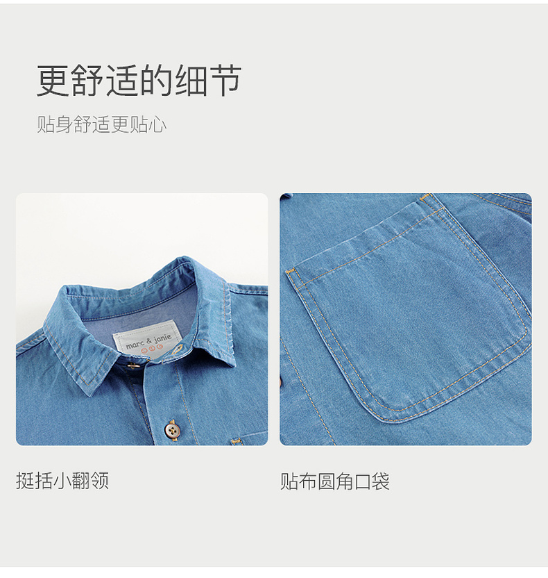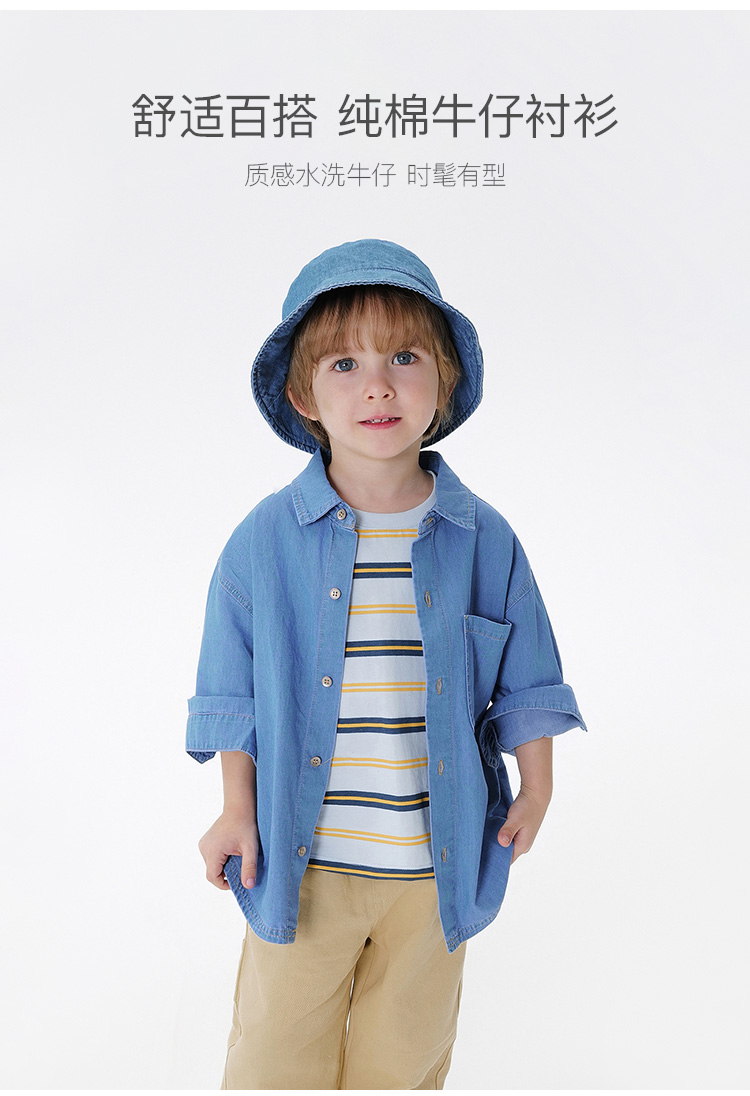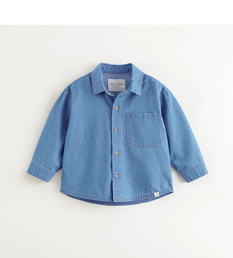 马克珍妮男童舒适百搭牛仔衬衫儿童纯棉衬衣2025年春装新款250106