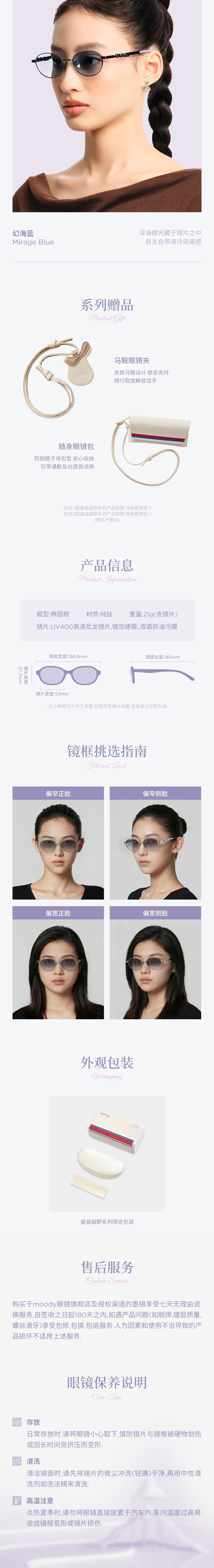 moody盛装越野系列墨镜椭圆框Cici幻海蓝暮夜灰