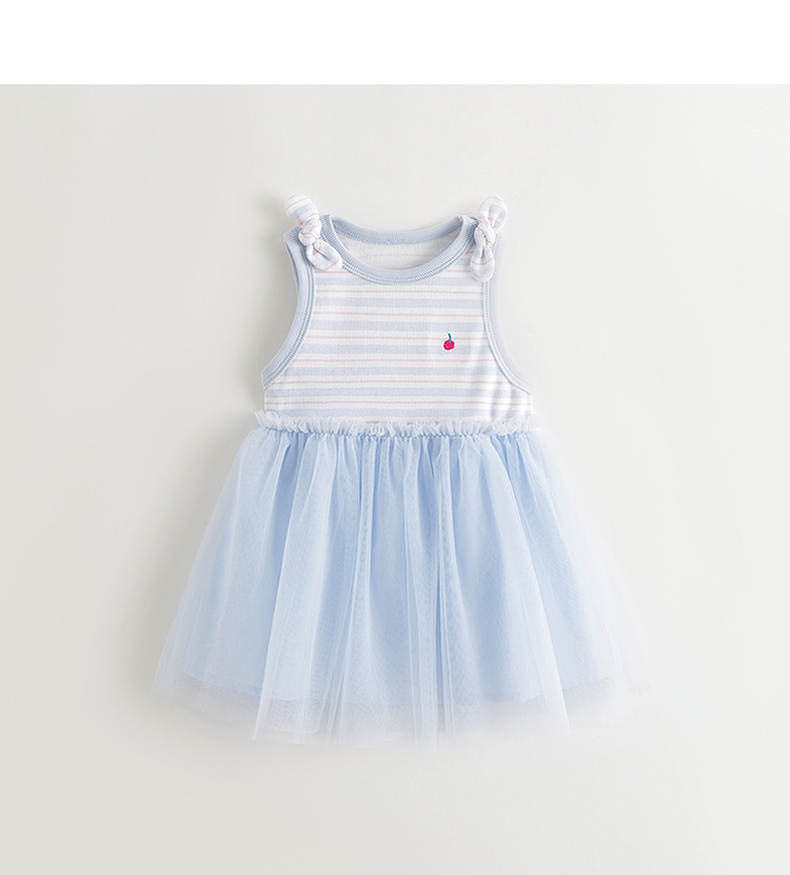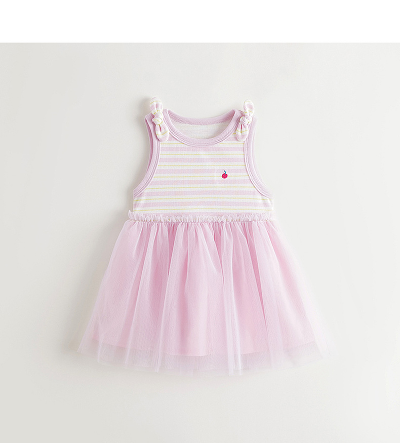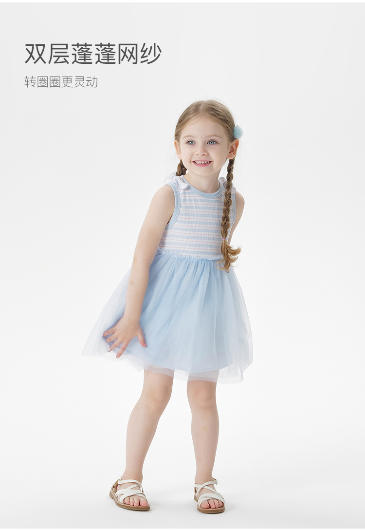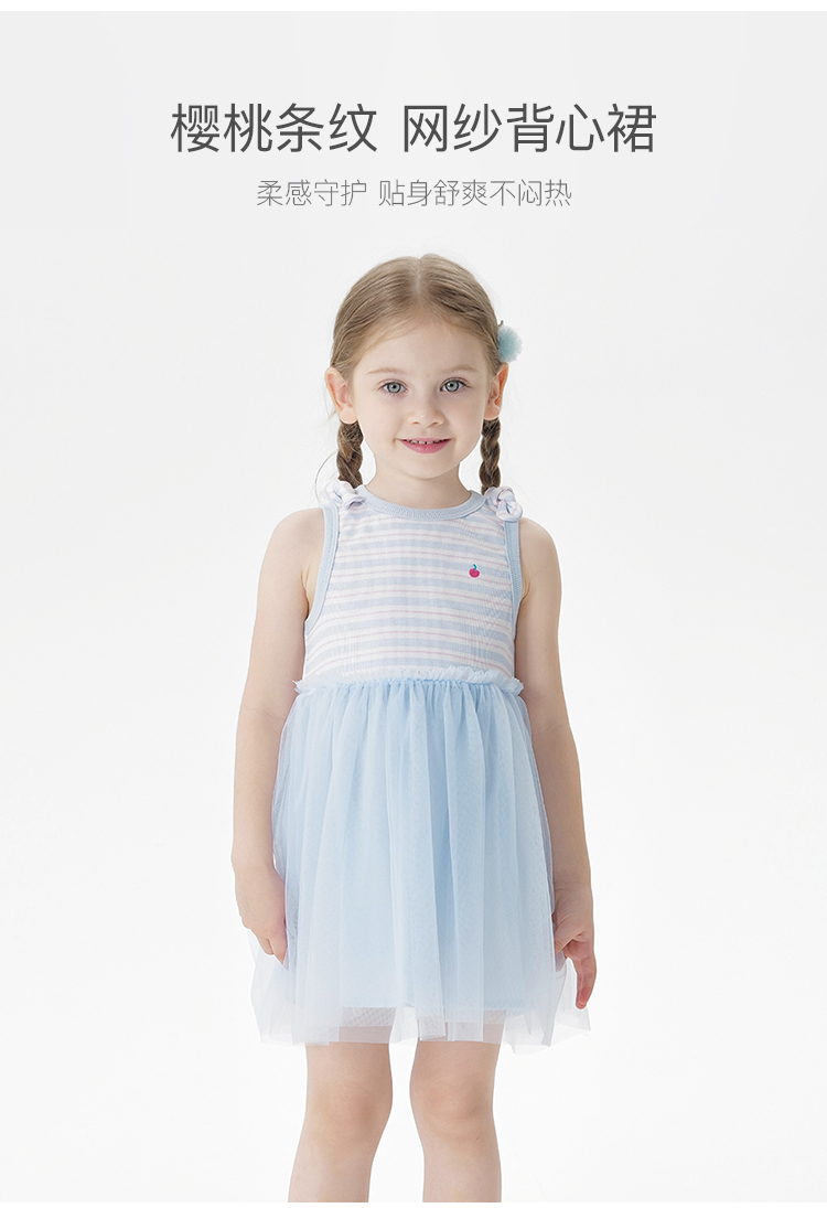 马克珍妮女童条纹网纱背心裙宝宝连衣裙2025年夏装新款裙子550753