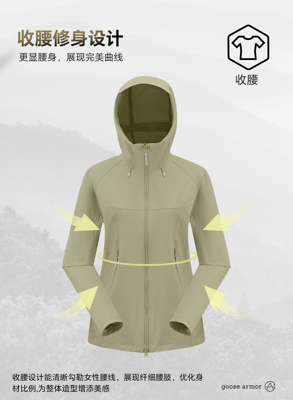 天石(HIGHROCK)鹅铠甲机能防风软壳衣女士户外登山运动夹克春秋休闲单层外套 G620