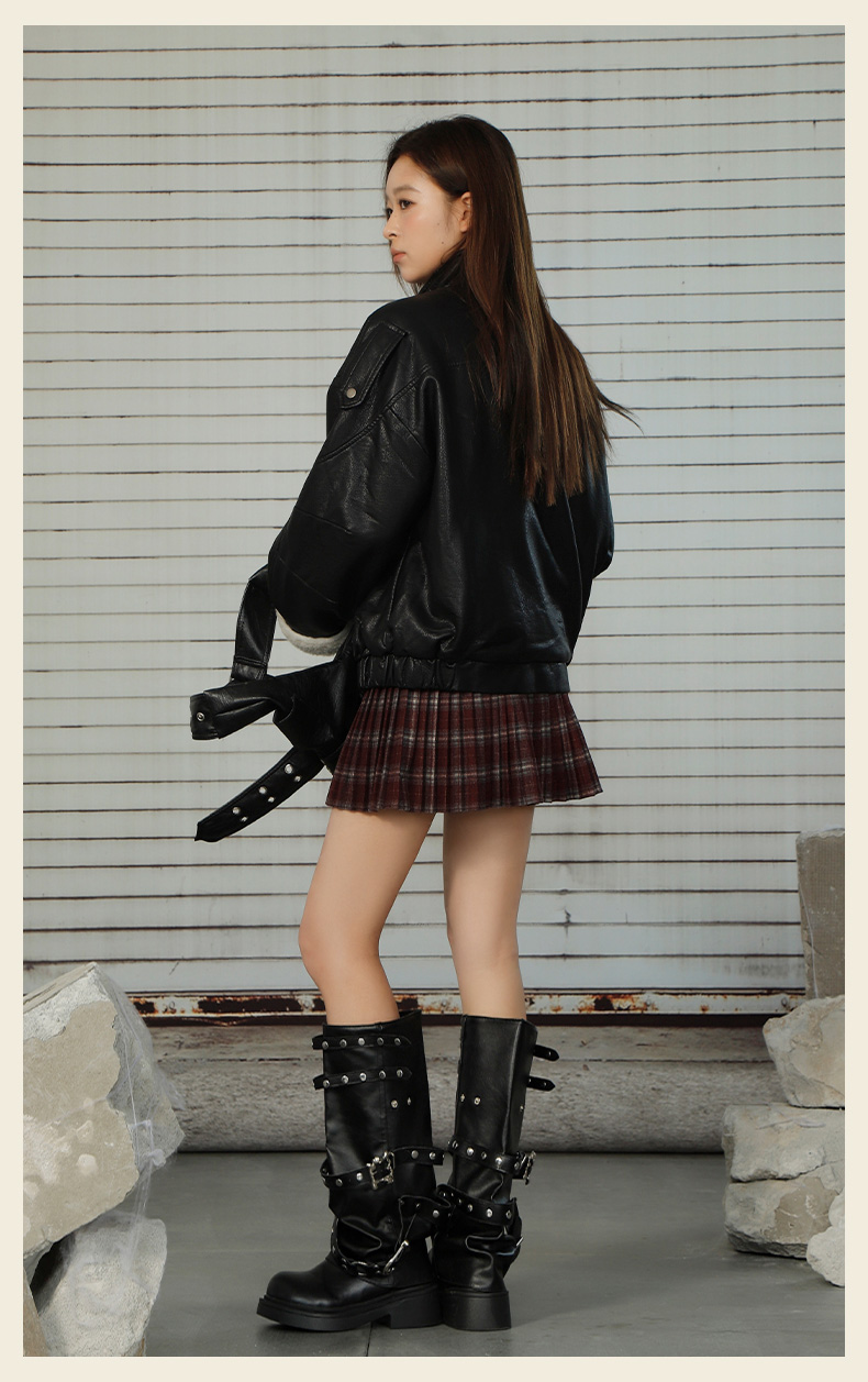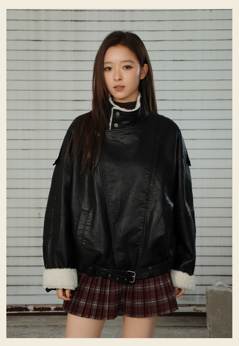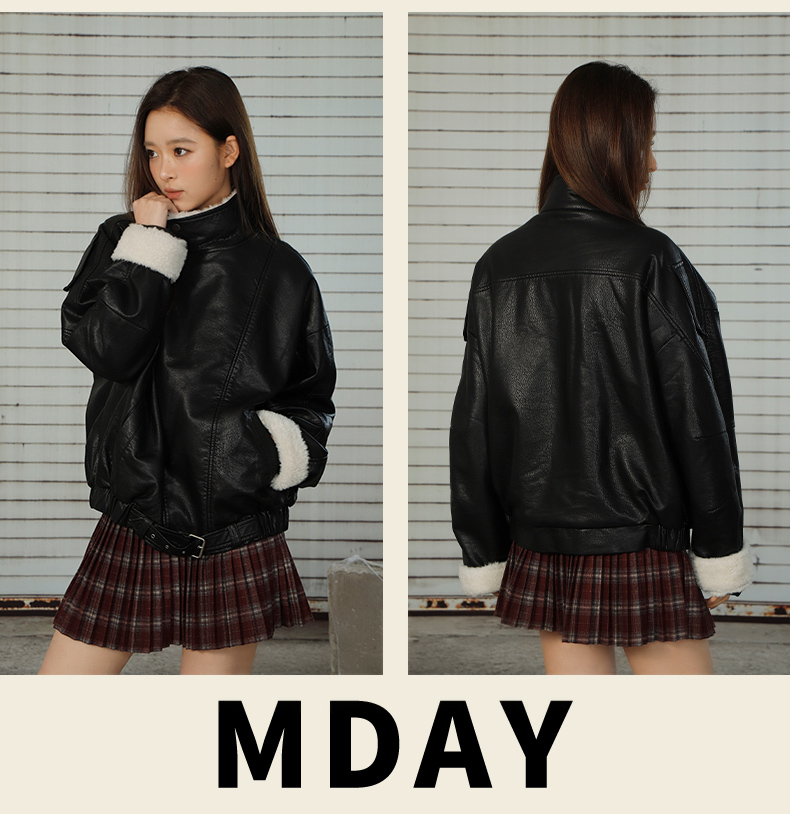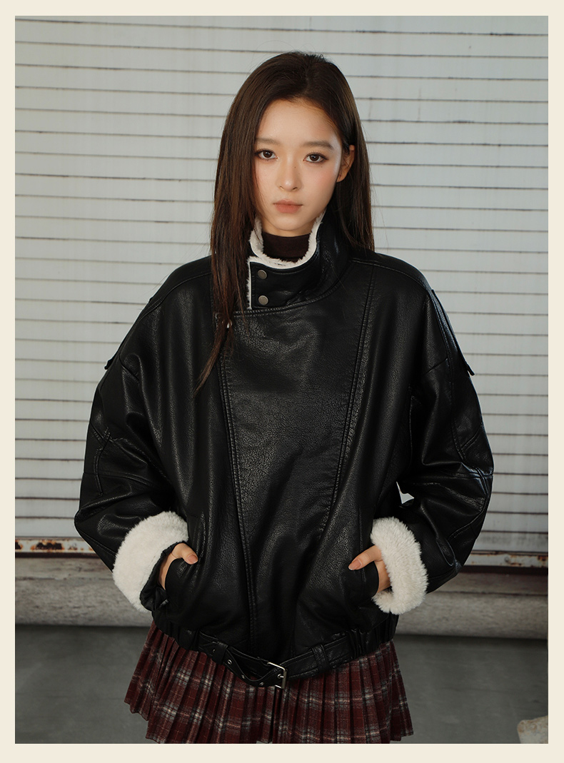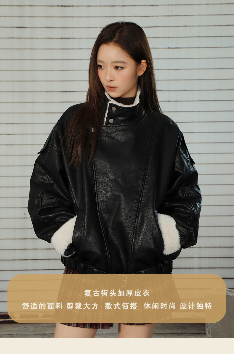 复古街头拼接立领加厚加绒女款皮衣-纪念日百货门店同款167293095