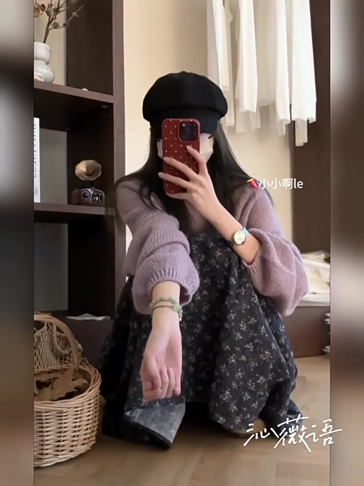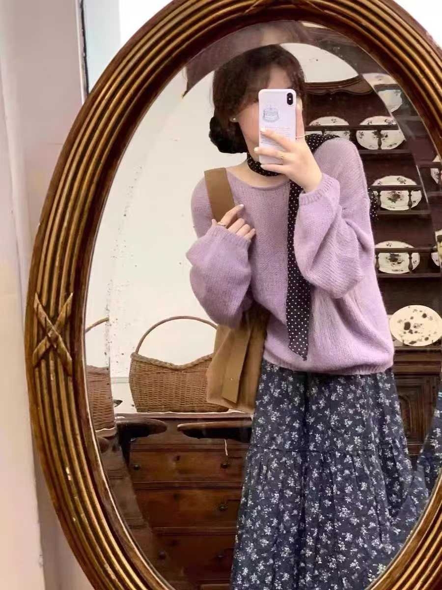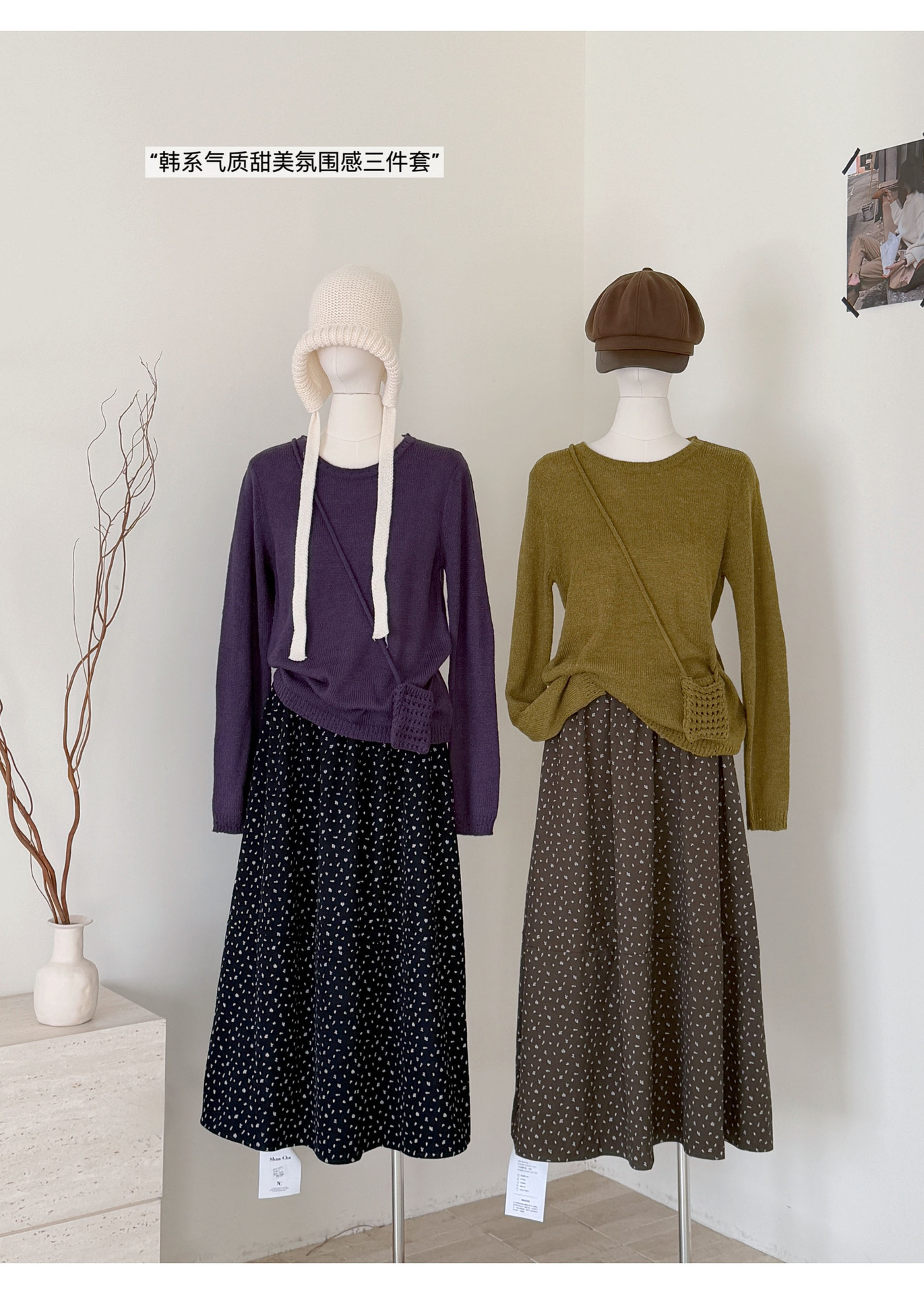【GZ】无忧购韩系温柔穿搭秋冬针织毛衣碎花半身裙三件套装女 8079/8838(截单后3-5天发货)