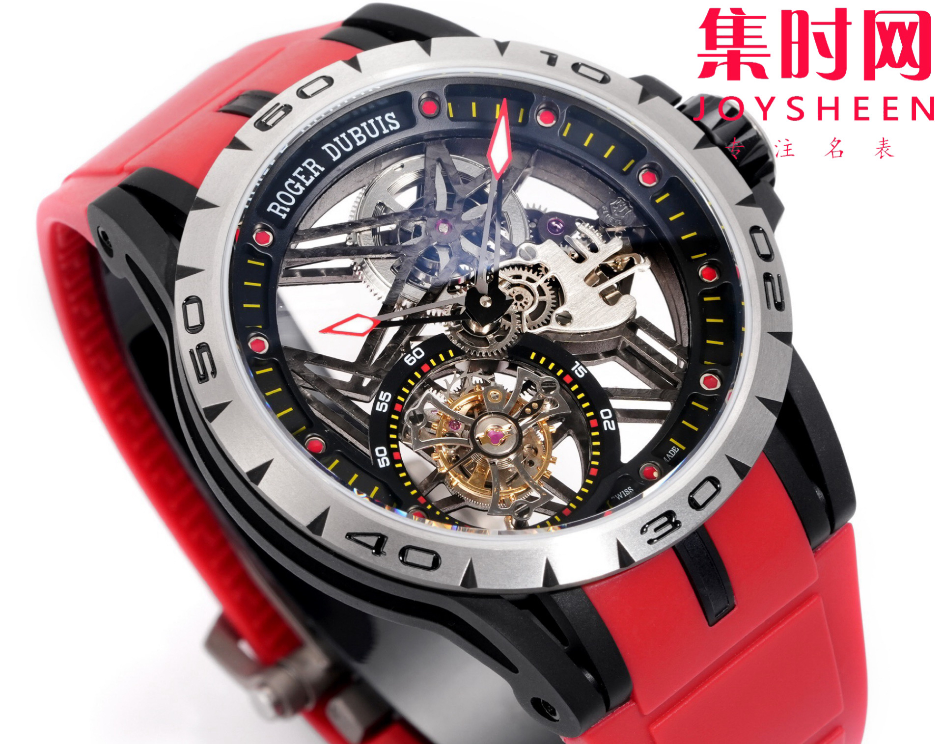 NEW罗杰杜彼钛金属镂空陀飞轮腕表 真陀飞轮RDDBEX0549男士腕表,这款腕表极具罗杰杜彼品牌代表性的设计,星型的框架设计,凯尔特十字架形陀飞轮,配有秒盘和小秒针,更显机械感,几乎一眼就可识别。表壳直径45mm,厚度13.5毫米,搭载最新V4版机芯 全镂空定制RD505S手动上链陀飞轮机械机芯,机芯上夹板与鱼鳞纹打磨在内的各种超卓精修。