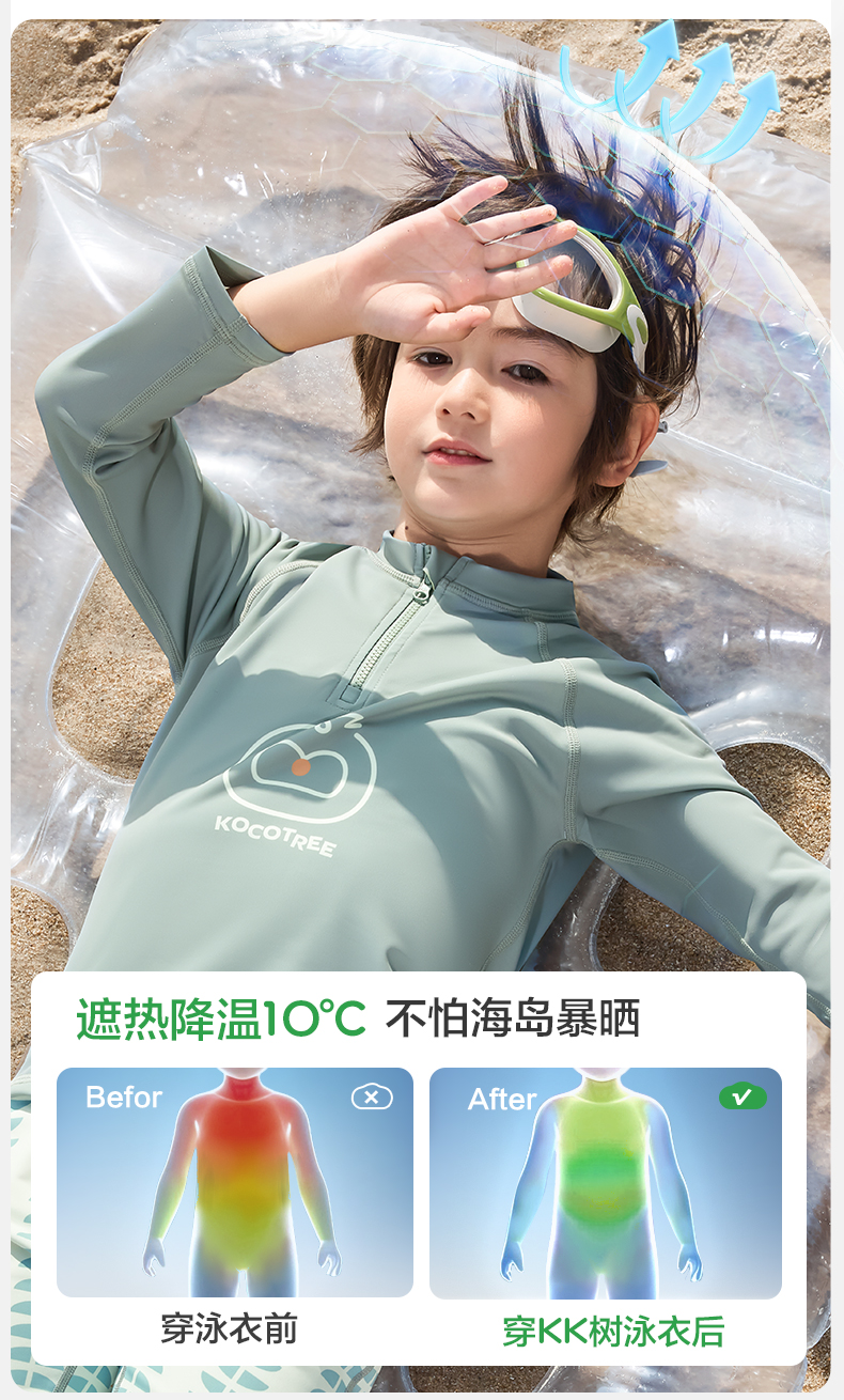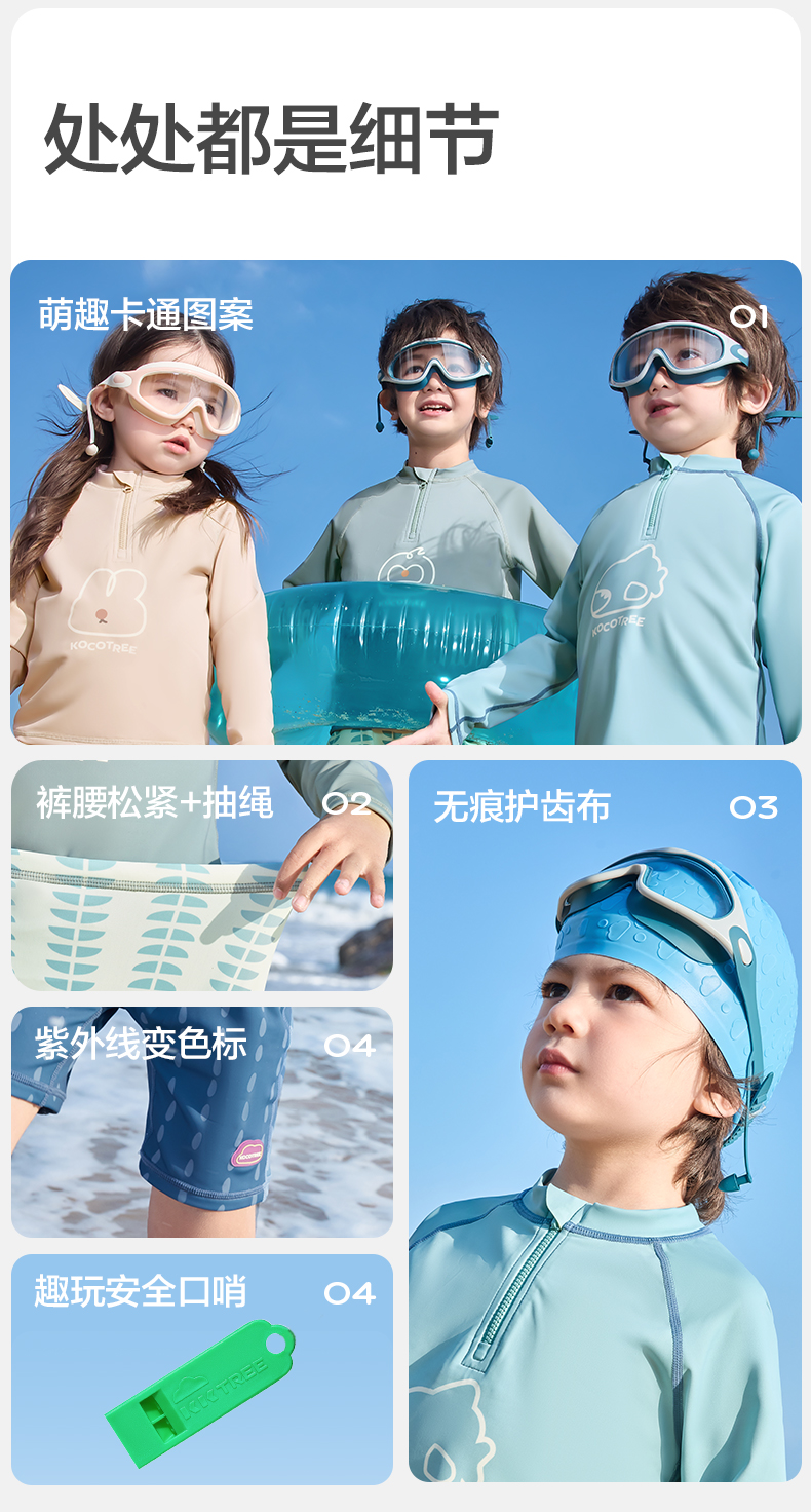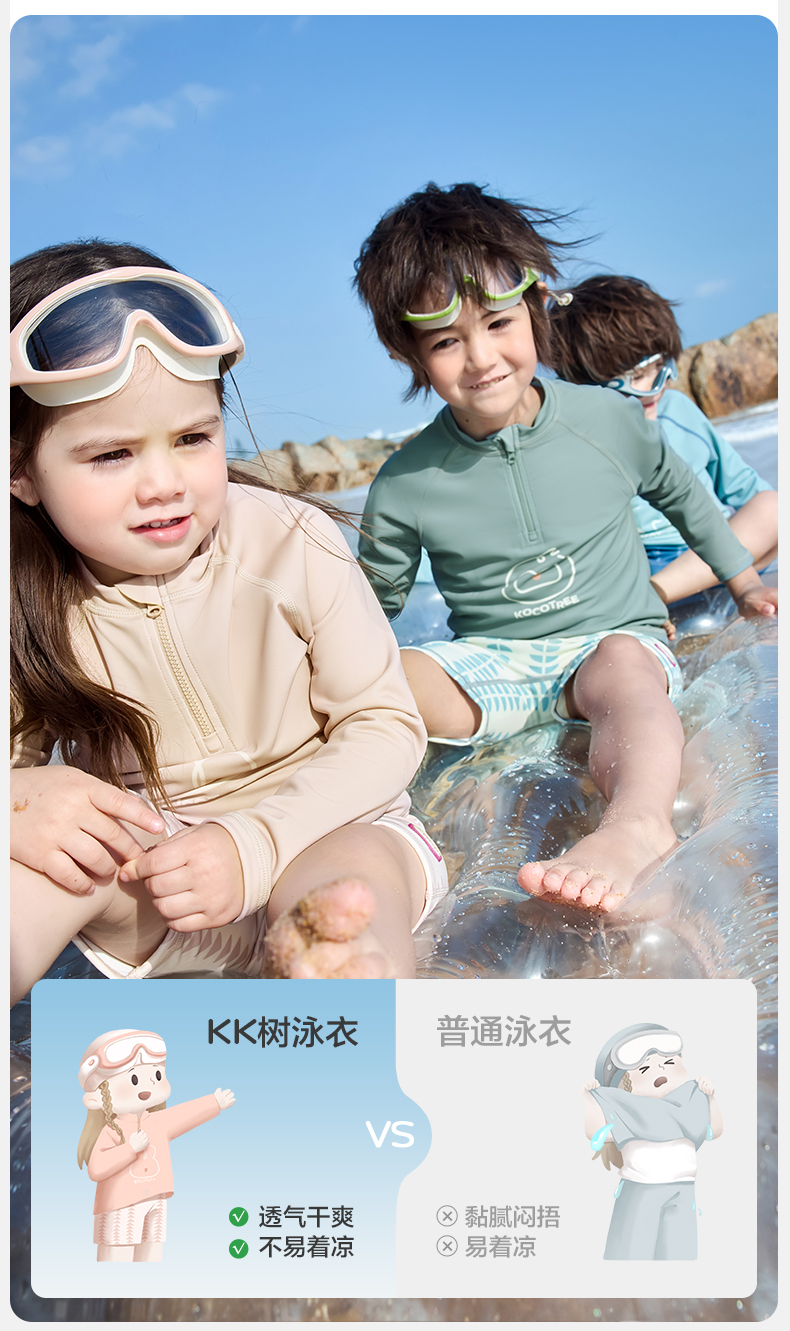 KK树宝宝泳衣分体长袖防晒儿童泳裤游泳衣套装男童小女孩2025新款萌萌假日分体泳衣