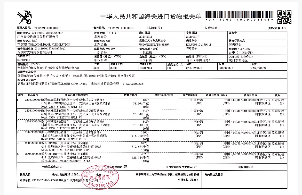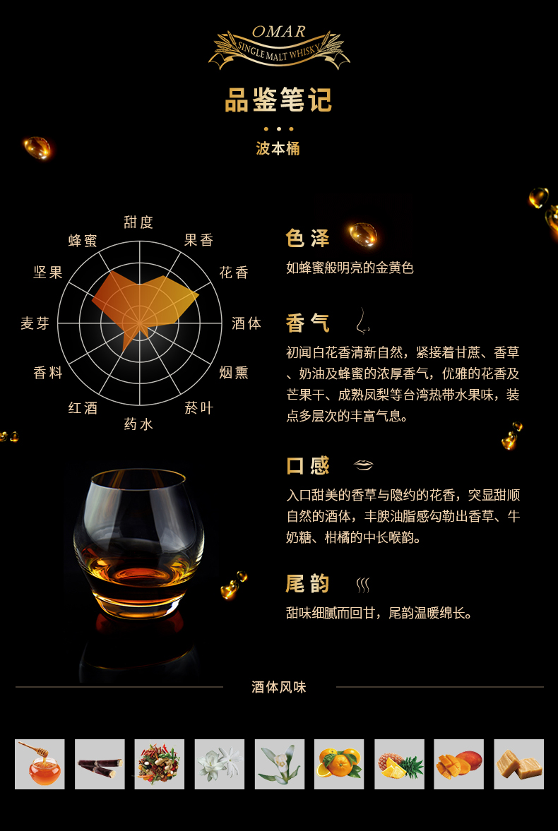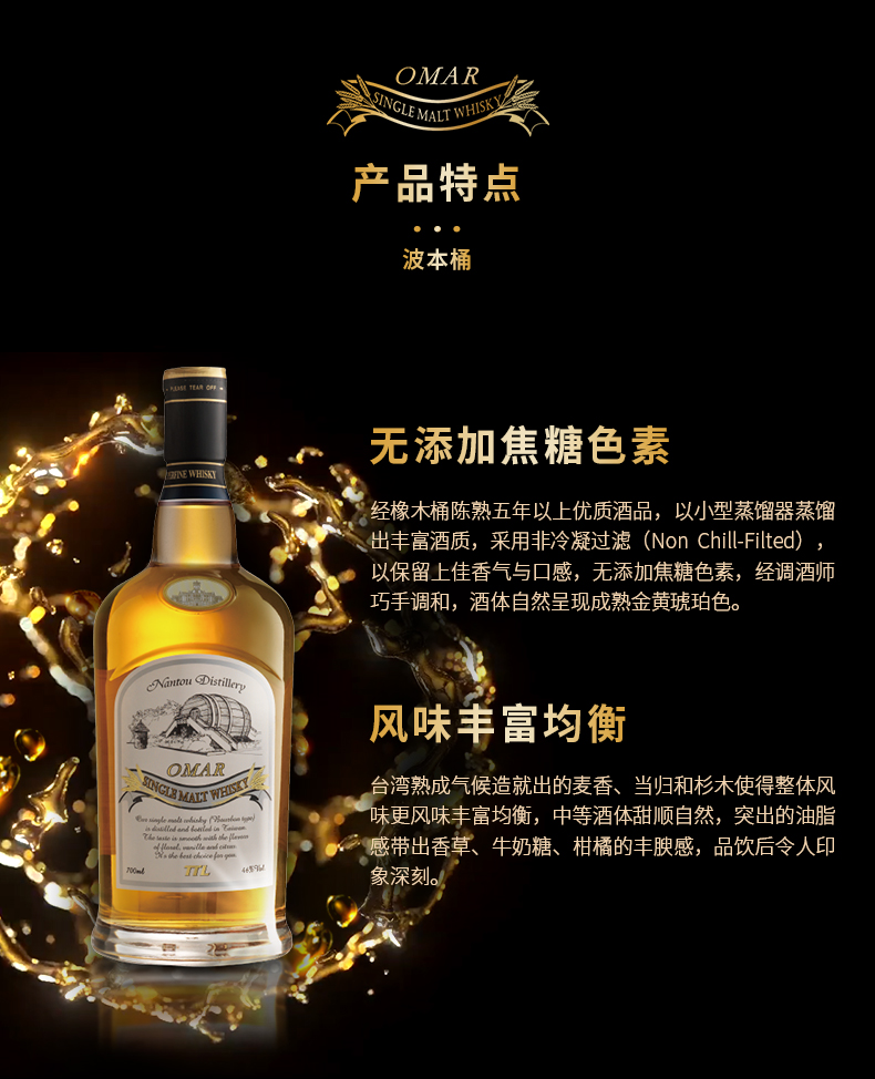 46°傲玛OMAR单一麦芽威士忌(波本桶)700ml