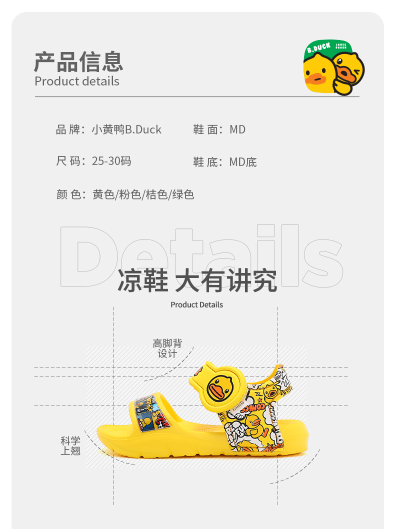 B.Duck小黄鸭童鞋夏季儿童凉鞋23-30 B2385039