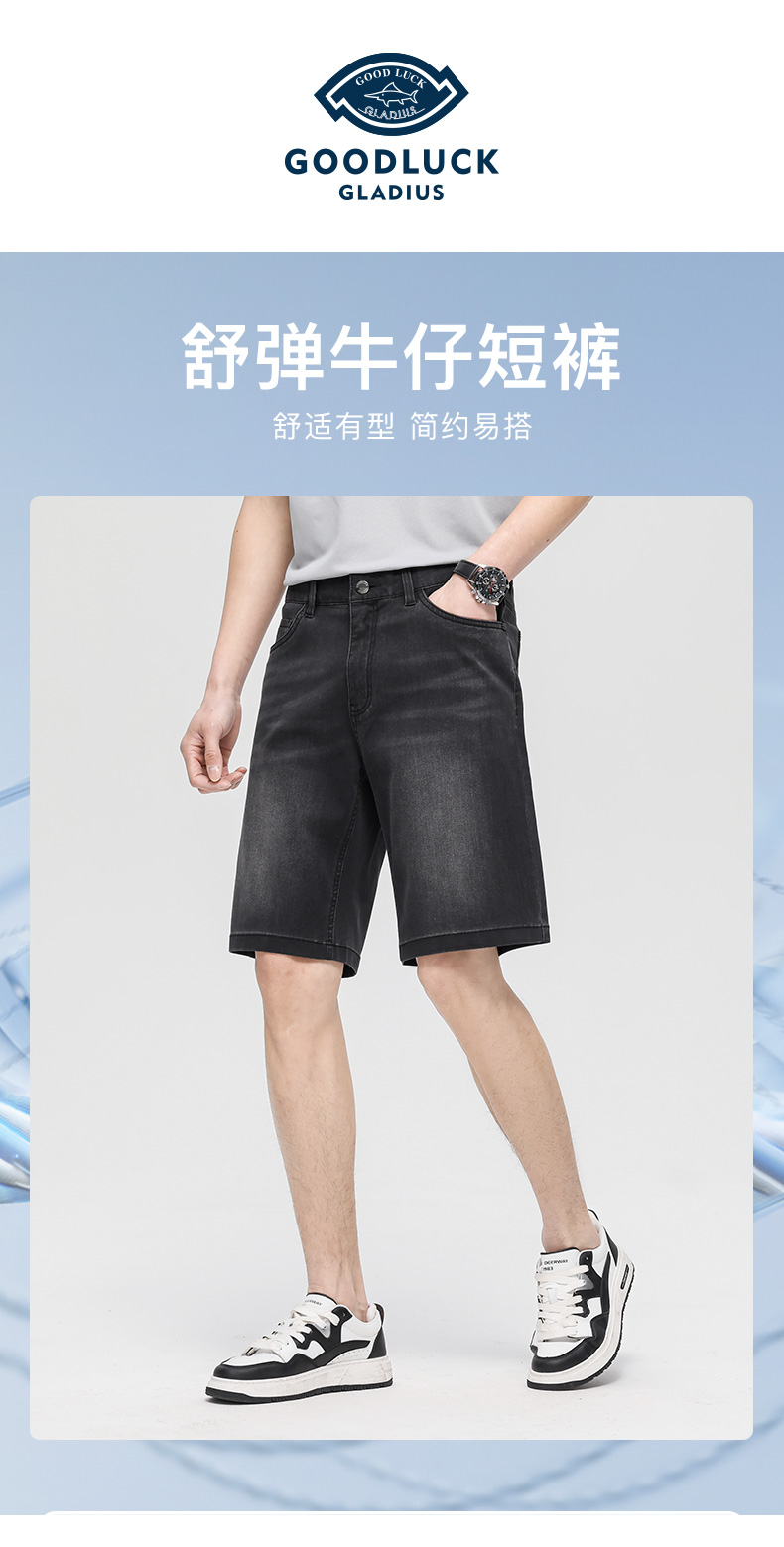 德鲨鲨鱼黑色百搭牛仔短款男2026夏新款休闲直筒五分裤子