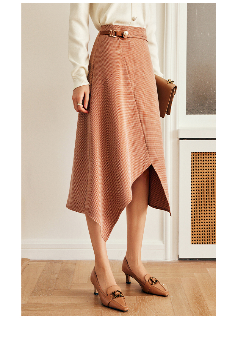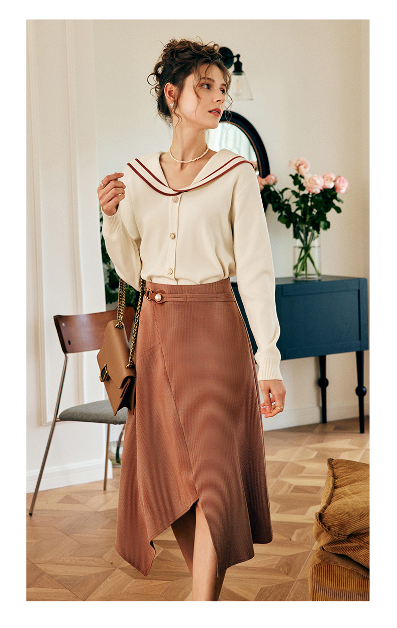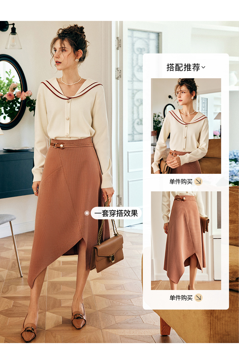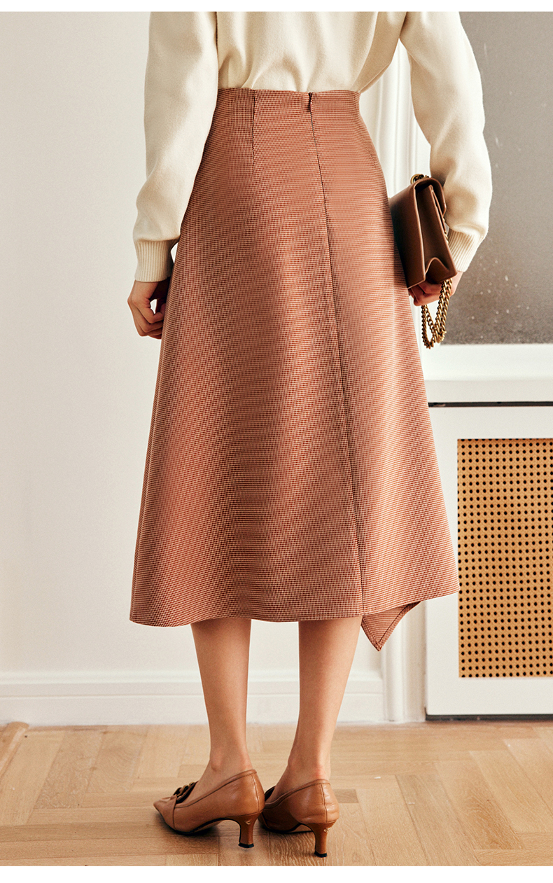 OLrain欧芮儿法式咖色半身裙女早秋2022年新款设计感不规则A字裙