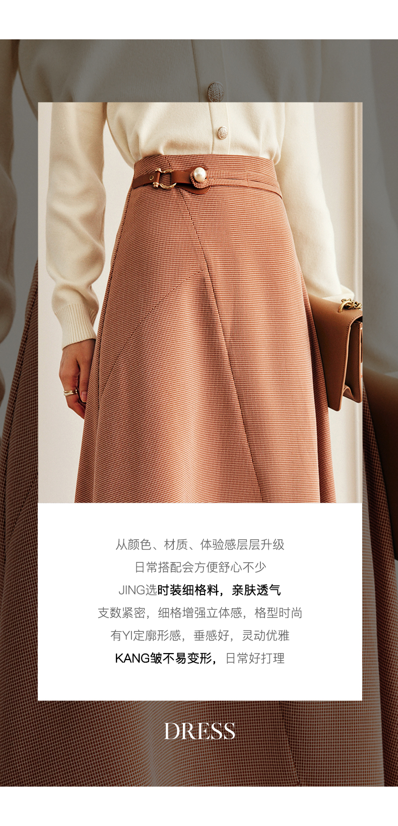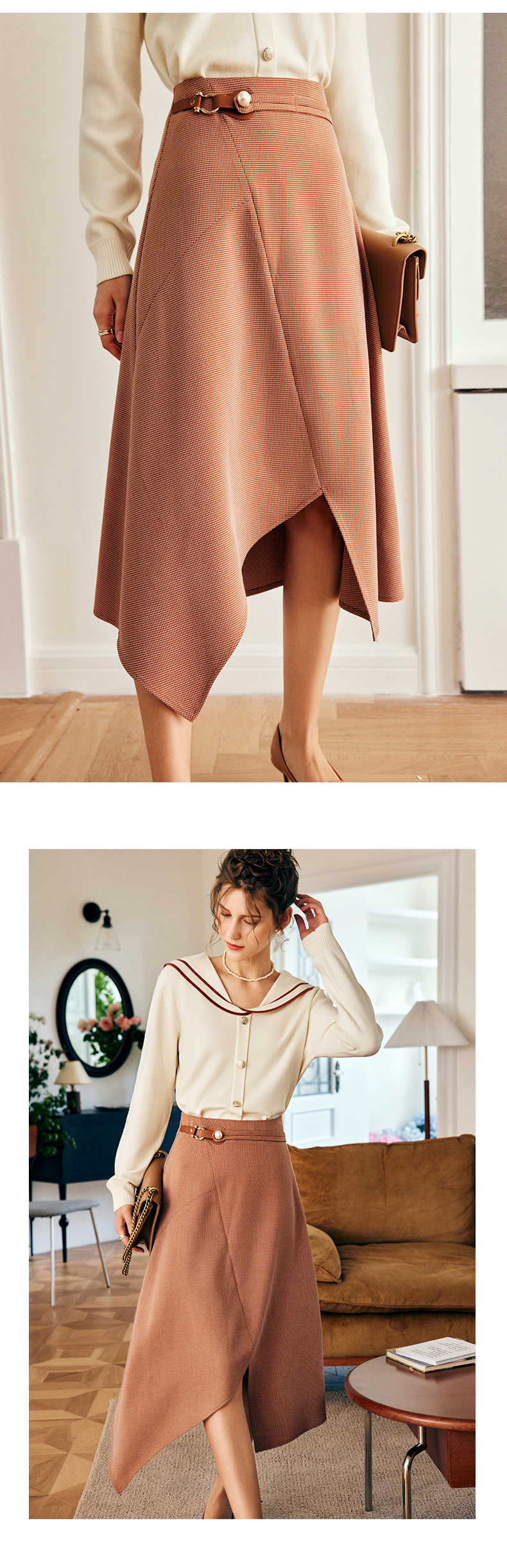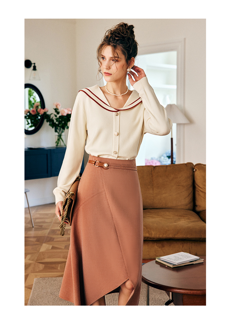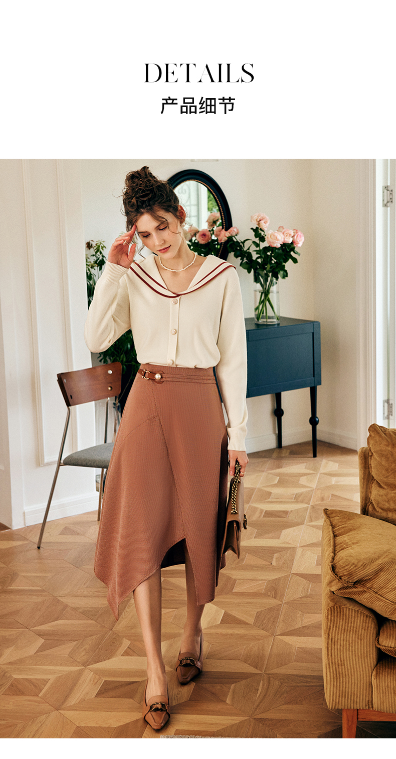 OLrain欧芮儿法式咖色半身裙女早秋2022年新款设计感不规则A字裙