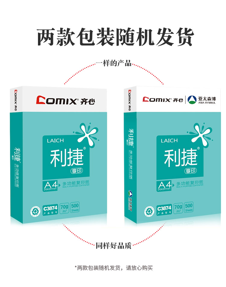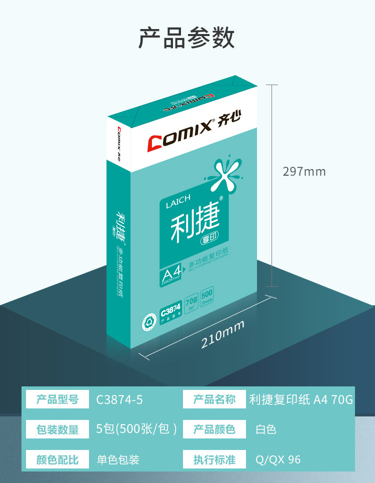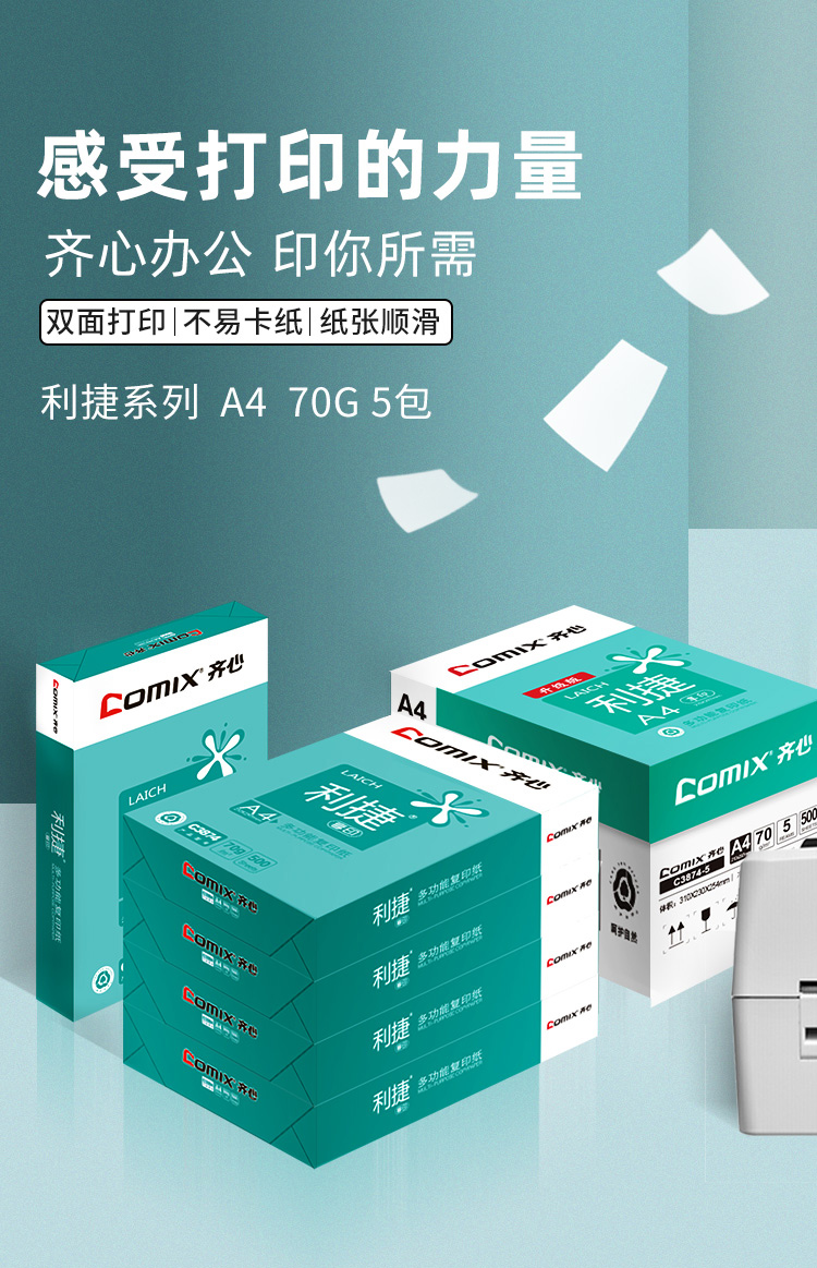 齐心(Comix)利捷 70g A4 复印纸 500张/包 5包/箱(2500张) C3874-5