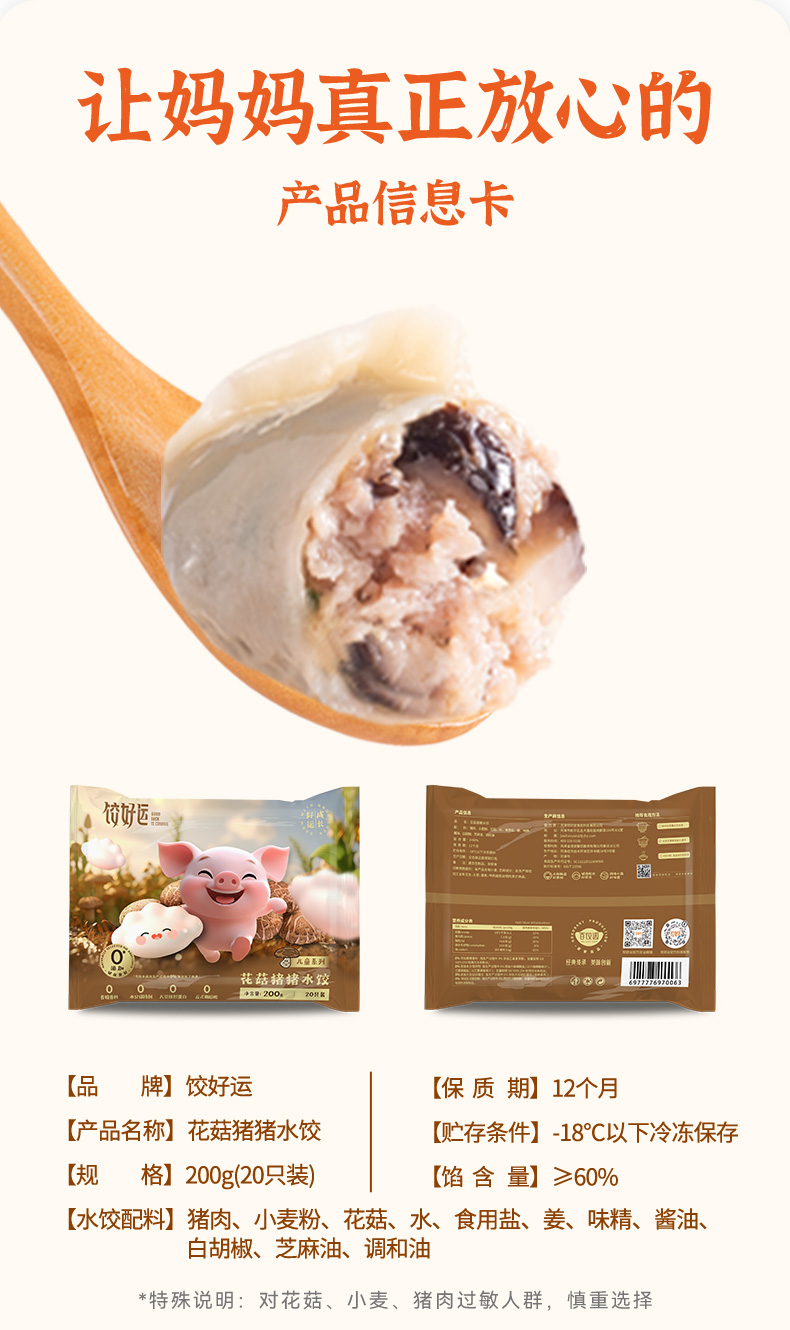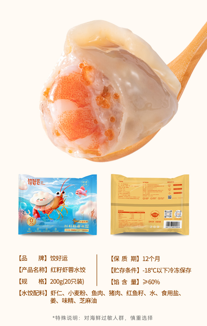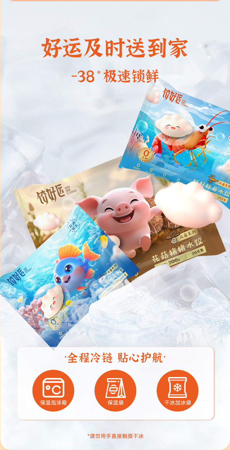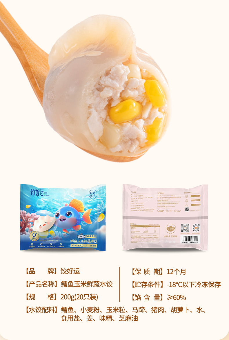 饺好运 儿童营养成长水饺3袋装 红籽虾蓉+花菇猪猪+鳕鱼玉米 72小时发货