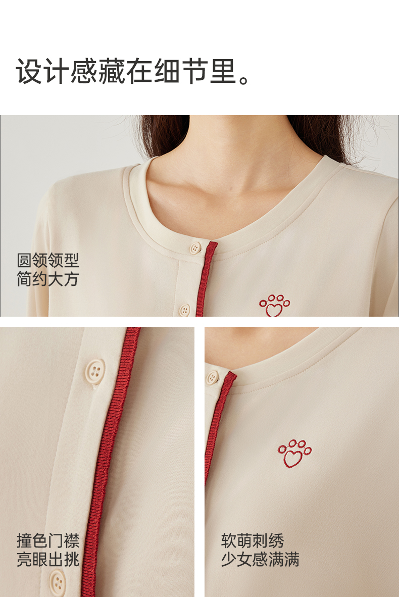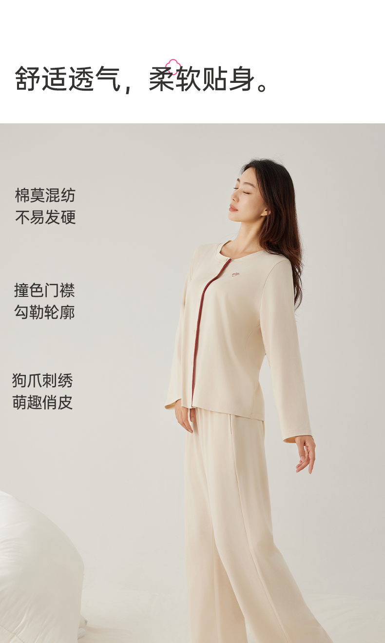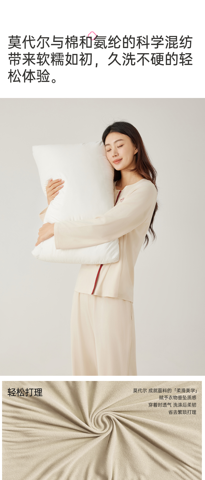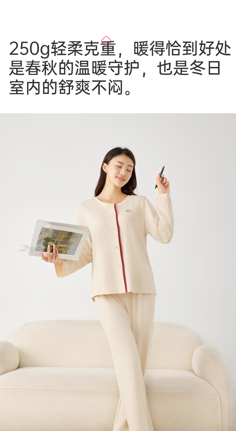洁丽雅家居服衣套装保暖成人春季秋季睡衣秋冬季圆领长袖长裤女士
