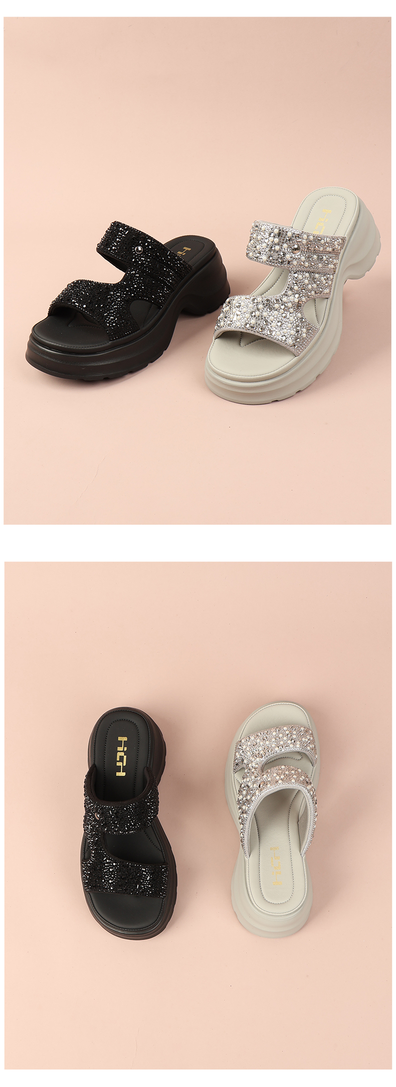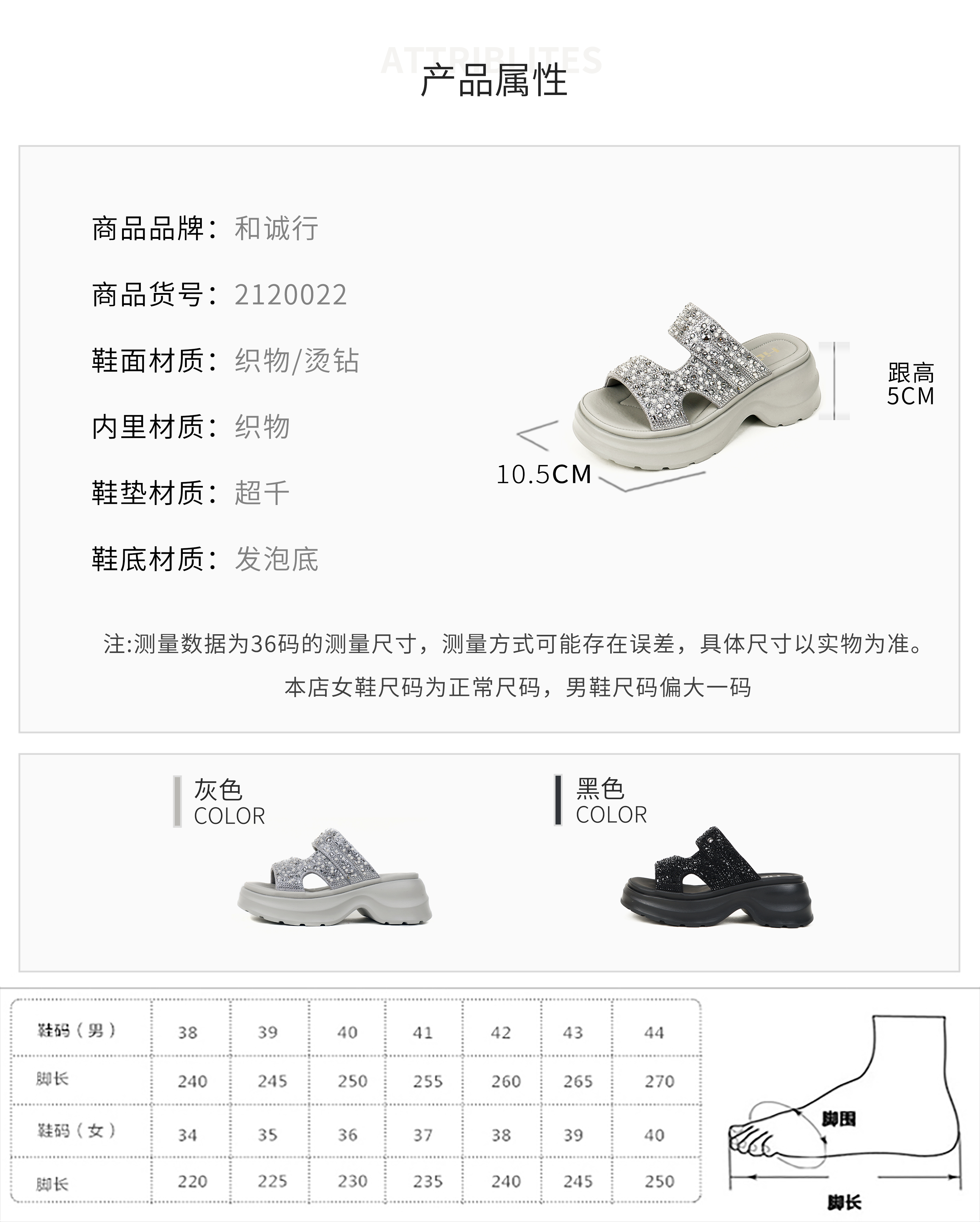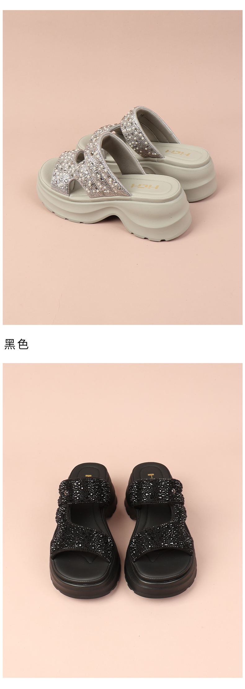 和诚行2026夏季新款时尚百搭厚底增高轻便舒适烫钻女式拖鞋2120022